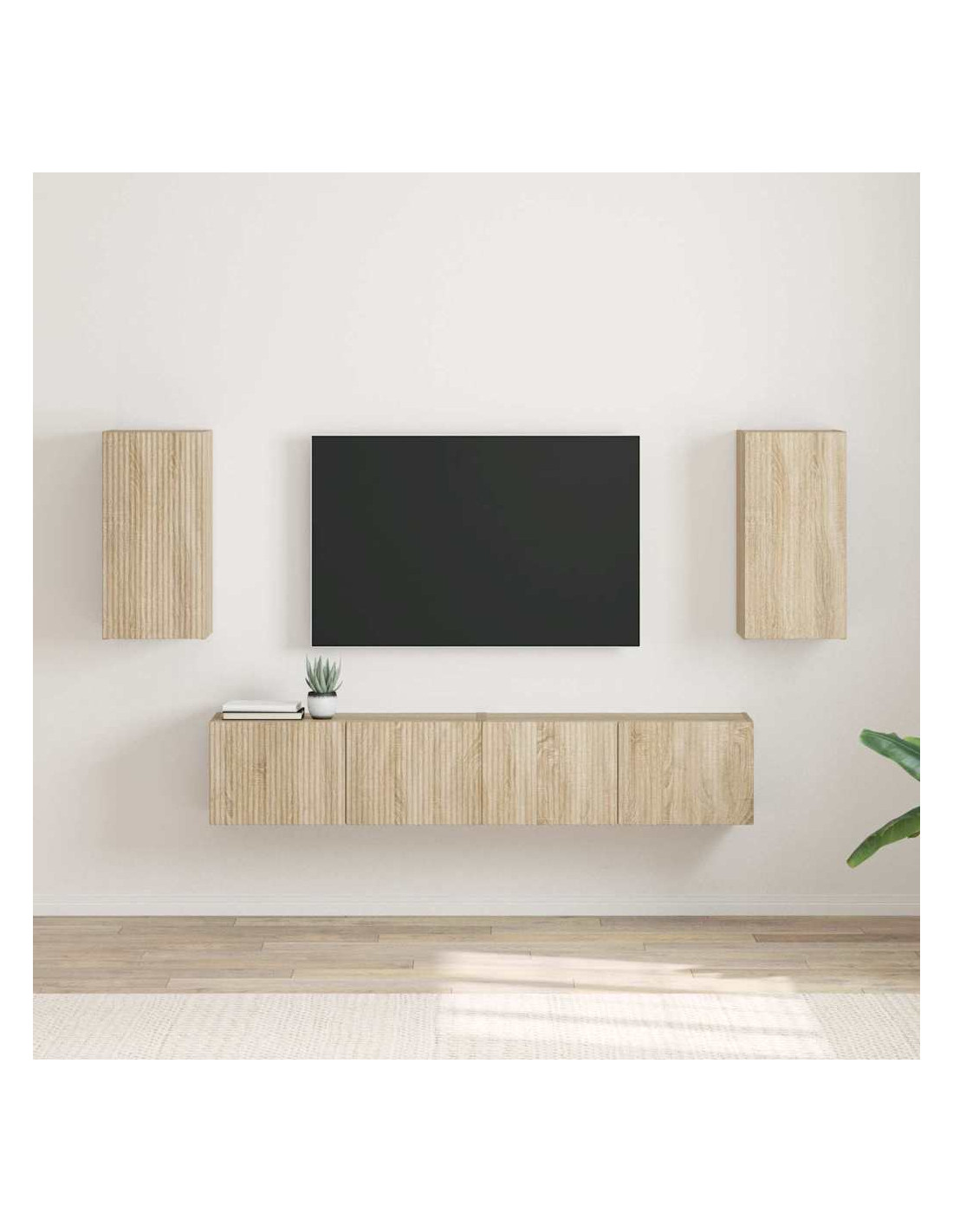 - Costruzione in legno ingegnerizzato: Fatto con legno ingegnerizzato di alta qualità, questo mobile a parete è robusto e affidabile. Il materiale è resistente all'usura, perfetto per mantenere un aspetto sempre attraente. Il suo schema di venature aggiunge eleganza, migliorando l'aspetto del tuo soggiorno.