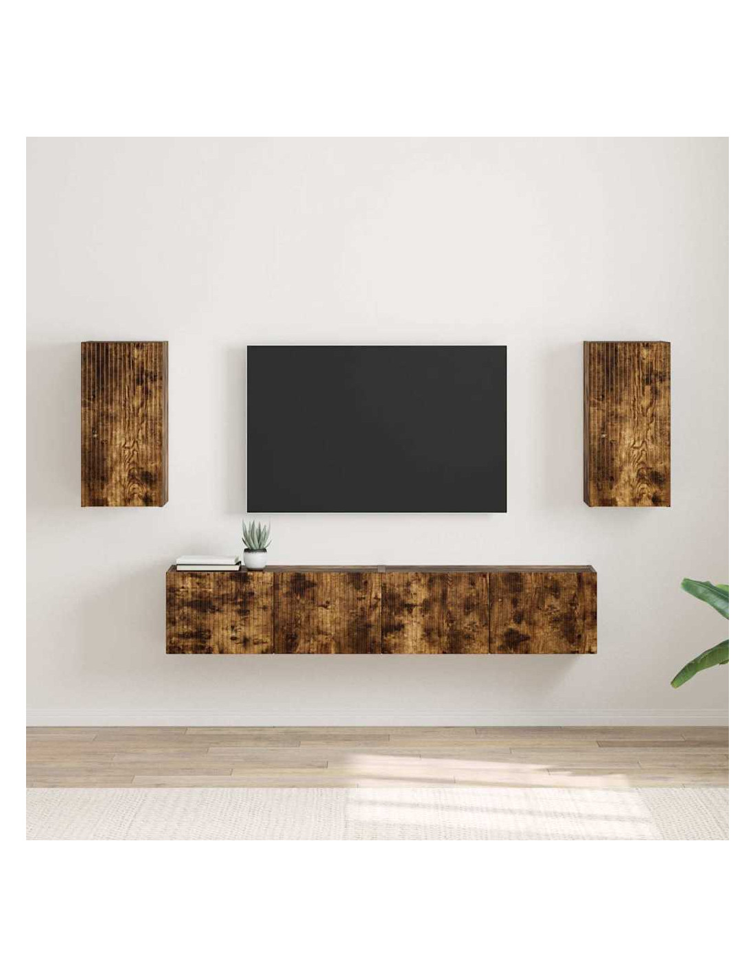 - Costruzione in legno ingegnerizzato: Fatto con legno ingegnerizzato di alta qualità, questo mobile a parete è robusto e affidabile. Il materiale è resistente all'usura, perfetto per mantenere un aspetto sempre attraente. Il suo schema di venature aggiunge eleganza, migliorando l'aspetto del tuo soggiorno.