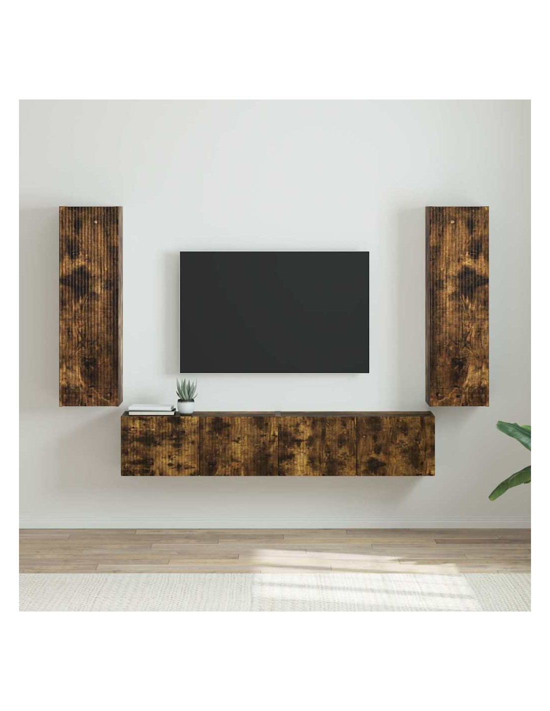 - Costruzione in legno ingegnerizzato: Fatto con legno ingegnerizzato di alta qualità, questo mobile a parete è robusto e affidabile. Il materiale è resistente all'usura, perfetto per mantenere un aspetto sempre attraente. Il suo schema di venature aggiunge eleganza, migliorando l'aspetto del tuo soggiorno.
