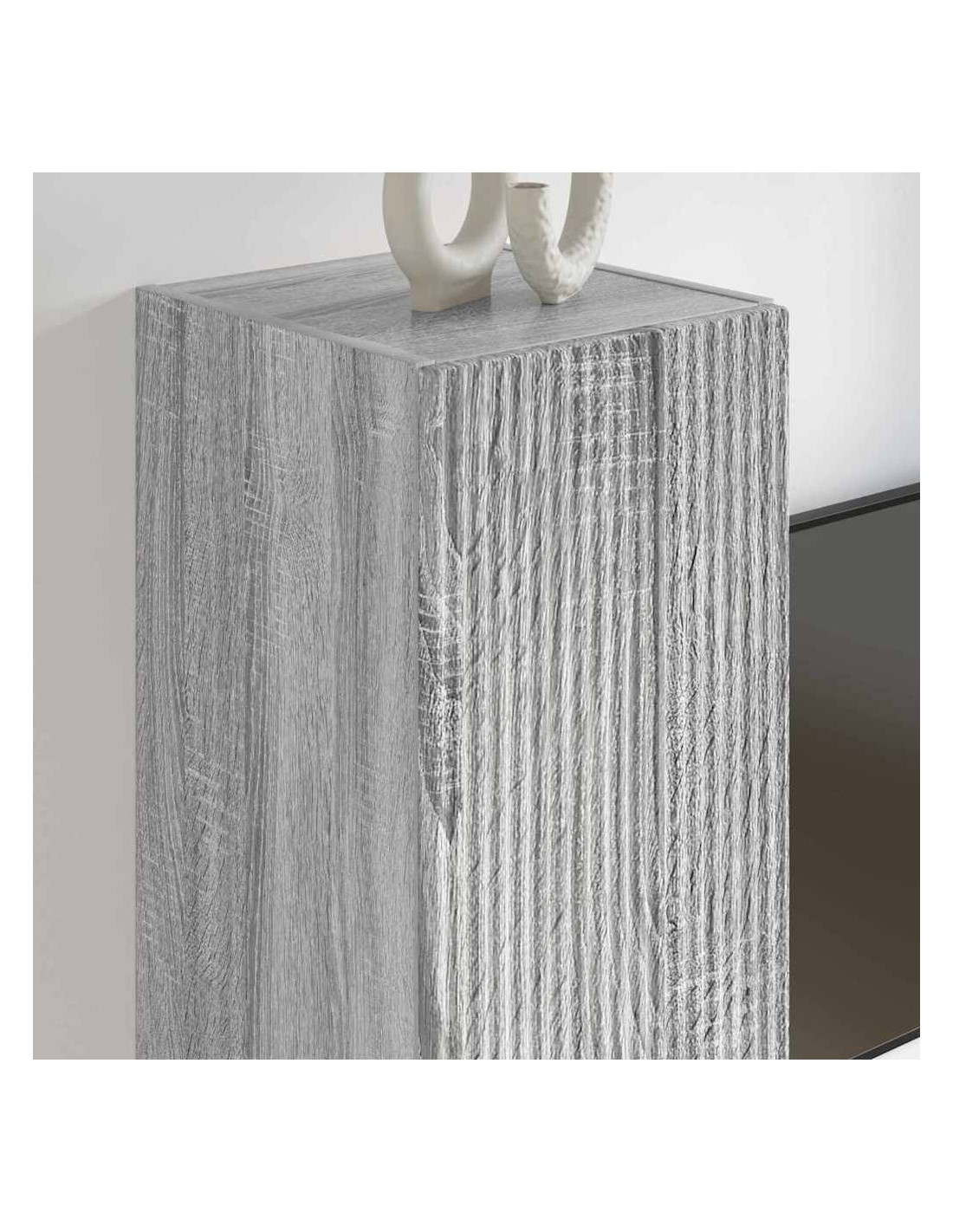 - Costruzione in legno ingegnerizzato: Fatto con legno ingegnerizzato di alta qualità, questo mobile a parete è robusto e affidabile. Il materiale è resistente all'usura, perfetto per mantenere un aspetto sempre attraente. Il suo schema di venature aggiunge eleganza, migliorando l'aspetto del tuo soggiorno.