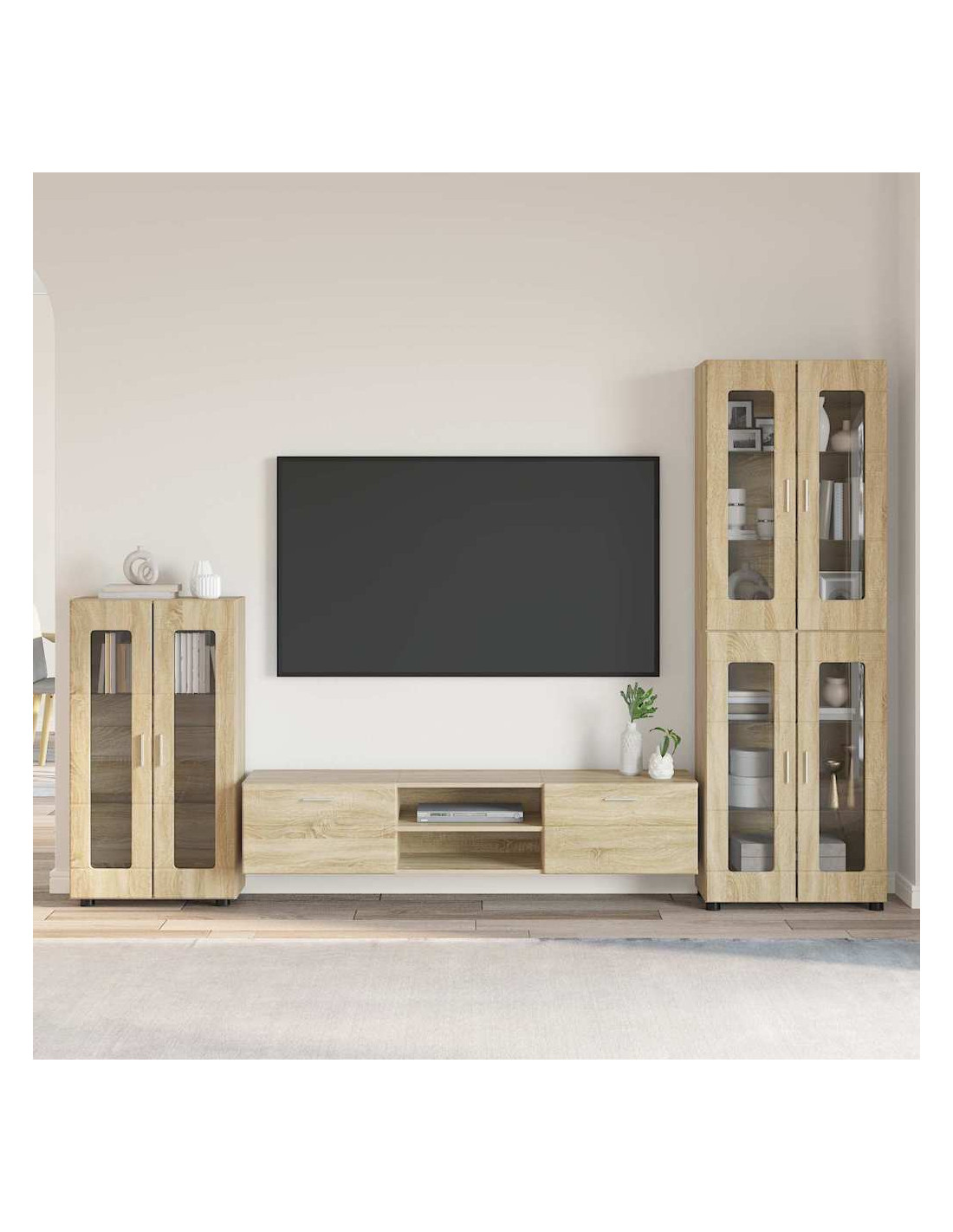 - Legno ingegnerizzato di qualità: Questo mobile è fatto con legno ingegnerizzato, scelto per la sua forza e stabilità. È resistente e durevole, progettato per affrontare l'uso quotidiano. La superficie liscia mette in risalto il design semplice, perfetto per stili moderni.
