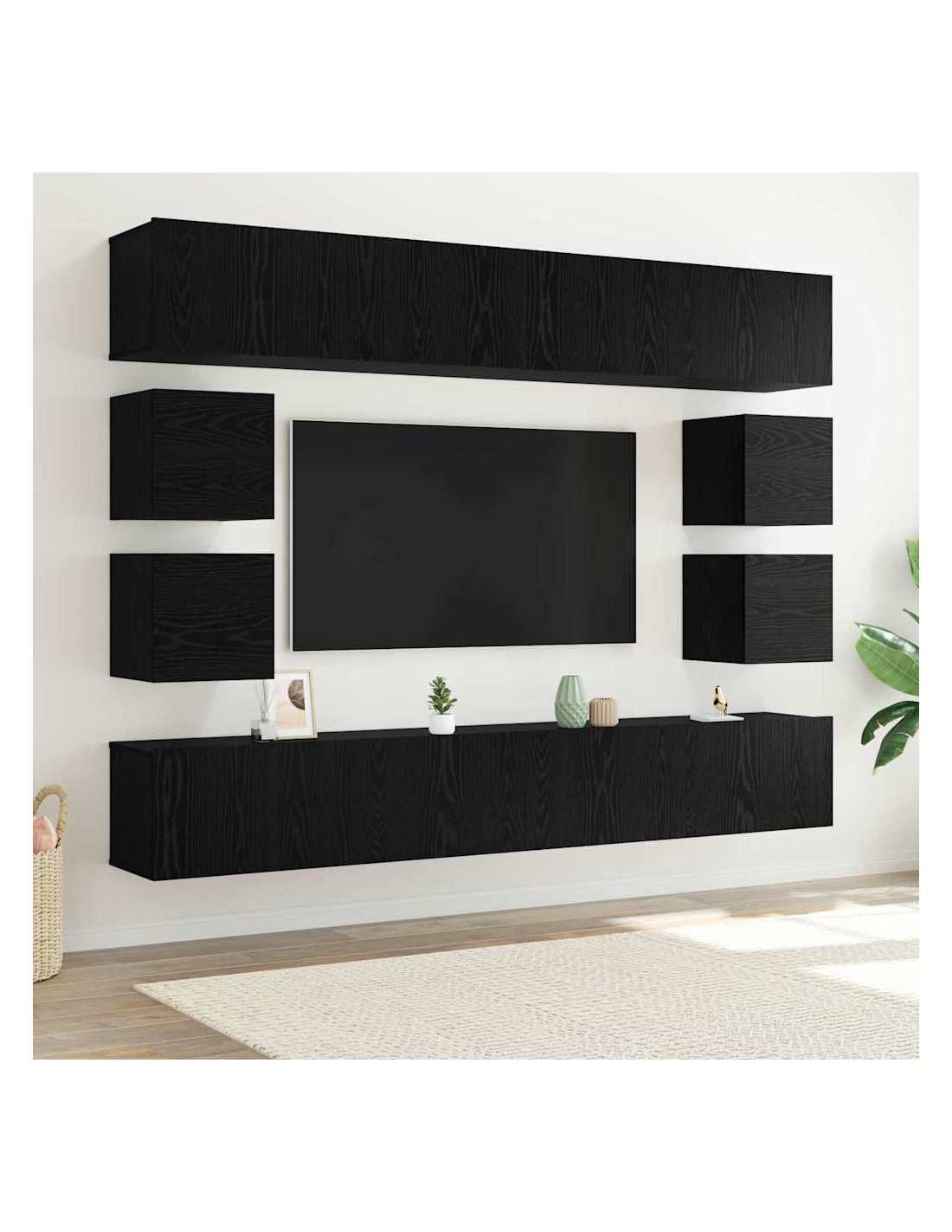 Se cerchi una soluzione di stoccaggio moderna ed efficace, dai un'occhiata a questo set di armadi TV a parete, pensato per il soggiorno. Montato a parete, ha un aspetto elegante e sofisticato, unendo funzionalità ed eleganza. Questo armadio rettangolare è perfetto per interni e si integra bene con vari stili. Realizzato in legno ingegnerizzato, promette durabilità mantenendo una presenza leggera che non sovrasta la stanza.
