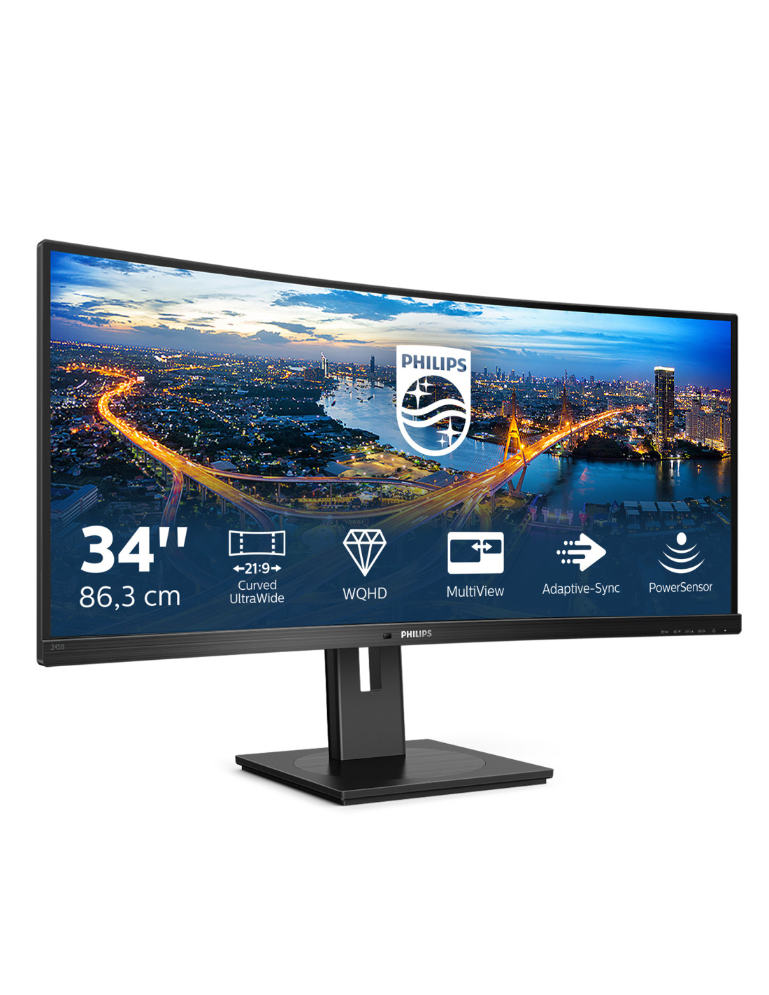 Il display Philips UltraWide curvo B Line da 34" ti offre una visione a tutto tondo del tuo lavoro. Il display WQHD Crystalclear e il piedistallo dal design ergonomico creano condizioni di lavoro ottimali. Sicuro per la vista: la certificazione TUV assicura la riduzione dell'affaticamento degli occhi.