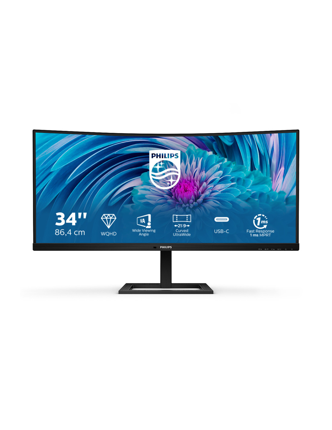 Il display Philips UltraWide curvo E Line offre un'ampia visuale panoramica. Un display WQHD con piedistallo ergonomico garantisce condizioni di visualizzazione ottimali. USB-C all-in-one e MultiView soddisfano le esigenze di produttività.