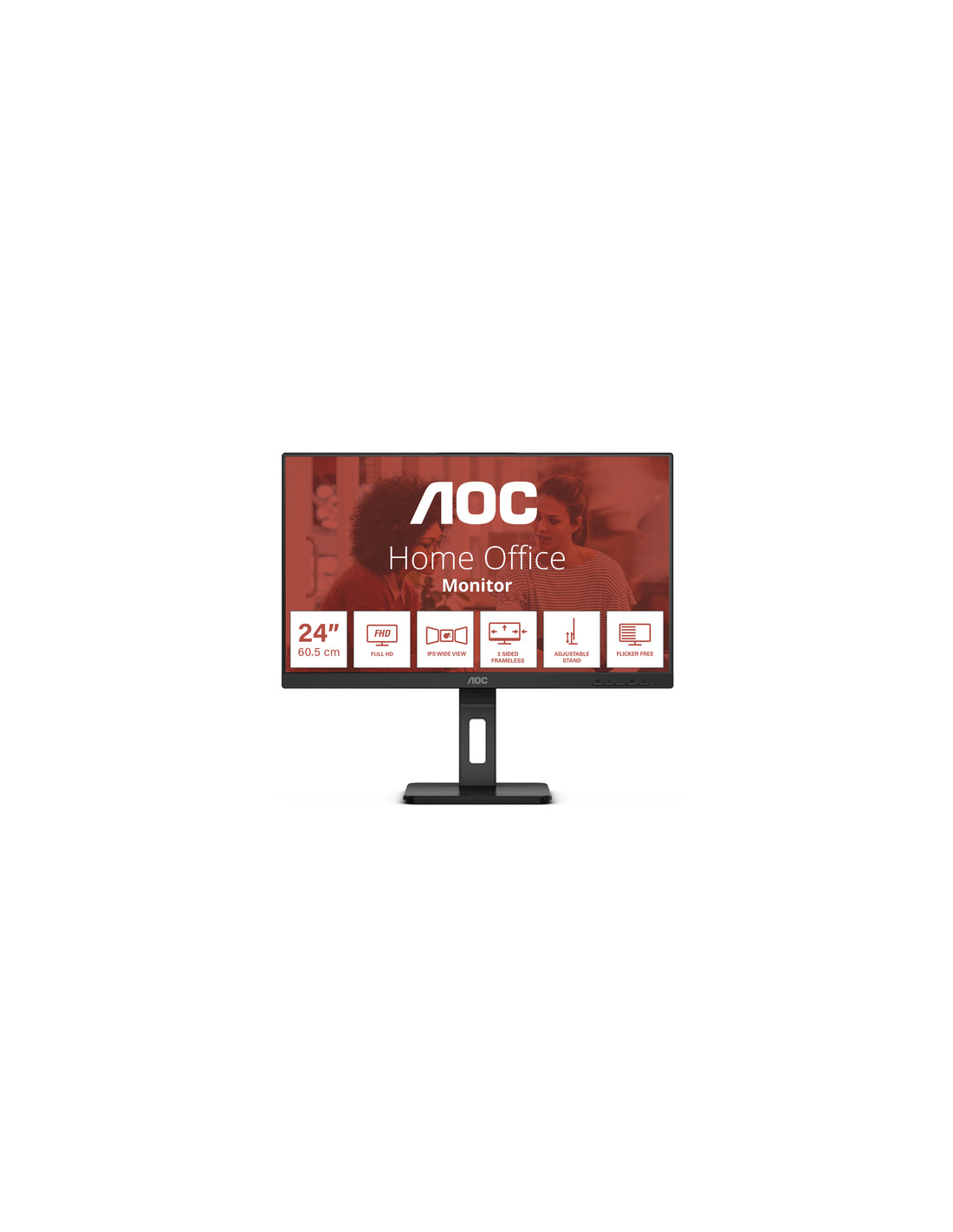 Il monitor AOC 24E3QAF offre tutti gli elementi essenziali per lavorare o studiare. Questo modello combina un ottimo pannello IPS da 24" con ampio angolo di visione e risoluzione FHD, funzioni per la cura degli occhi come Low Blue Mode e Flicker Free e altoparlanti integrati per godere facilmente di un audio di qualità. Per una postazione di lavoro ordinata, questo modello offre anche la gestione dei cavi. Per garantire il massimo comfort durante il lavoro, 24E3QAF è completamente ergonomico. La produttività sarà completata dall'Adaptive Sync e dalla frequenza di aggiornamento di 100Hz, che garantiscono prestazioni di visualizzazione fluide e senza strappi, sia che si lavori con documenti che si guardi un contenuto.