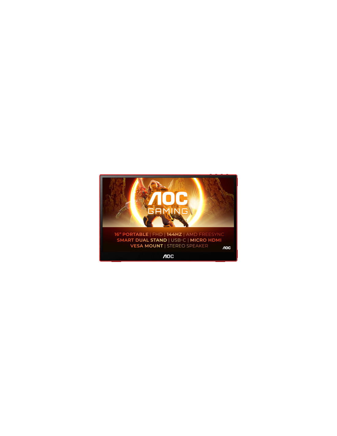 AOC GAMING 16G3 è un monitor portatile da gaming Full HD da 15,6" con pannello IPS, frequenza di aggiornamento rapida di 144 Hz, FreeSync e connettività completa per giocare ovunque