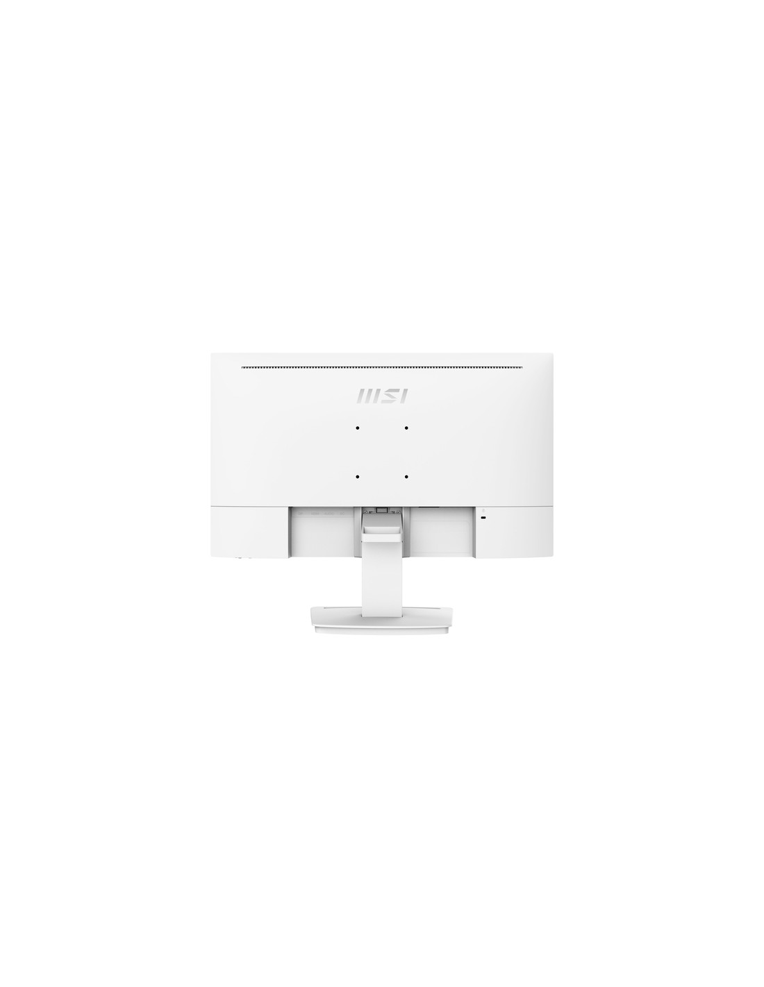 MSI Pro MP243XW. Dimensioni diagonale schermo: 60,5 cm (23.8"), Risoluzione del display: 1920 x 1080 Pixel, Tipologia HD: Full HD, Tempo di risposta: 1 ms, Rapporto d'aspetto nativo: 16:9, Angolo di visualizzazione (orizzontale): 178°, Angolo di visualizzazione (verticale): 178°. Altoparlanti incorporati. Montaggio standard VESA. Colore del prodotto: Bianco