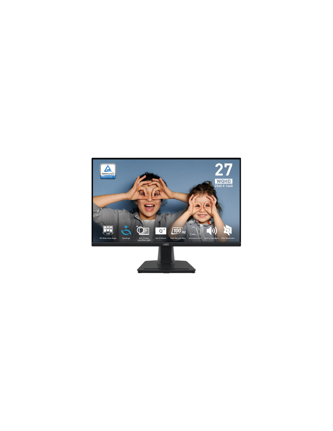 MSI Pro MP275Q. Dimensioni diagonale schermo: 68,6 cm (27"), Risoluzione del display: 2560 x 1440 Pixel, Tipologia HD: Wide Quad HD, Tecnologia display: LED, Tempo di risposta: 4 ms, Rapporto d'aspetto nativo: 16:9, Angolo di visualizzazione (orizzontale): 178°, Angolo di visualizzazione (verticale): 178°. Altoparlanti incorporati. Montaggio standard VESA. Colore del prodotto: Nero