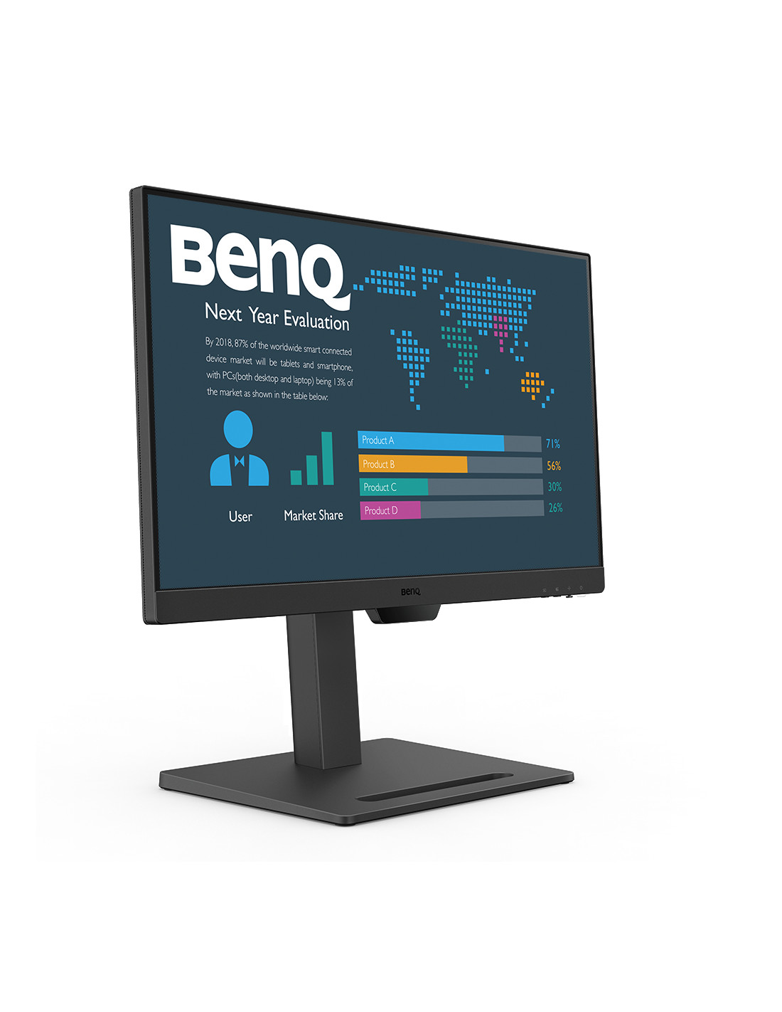 BenQ BL2490T. Dimensioni diagonale schermo: 60,5 cm (23.8"), Risoluzione del display: 1920 x 1080 Pixel, Tipologia HD: Full HD, Tempo di risposta: 5 ms, Rapporto d'aspetto nativo: 16:9, Angolo di visualizzazione (orizzontale): 178°, Angolo di visualizzazione (verticale): 178°. Altoparlanti incorporati. Montaggio standard VESA, Regolazione altezza. Colore del prodotto: Nero