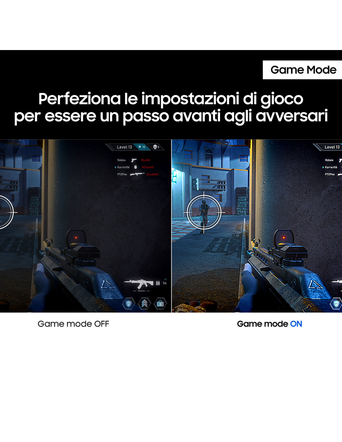 Assicurati un vantaggio competitivo grazie alle impostazioni di gioco ottimizzabili. Il colore e il contrasto dellimmagine possono essere regolati istantaneamente per vedere più chiaramente le scene e individuare i nemici nascosti nel buio, mentre la Game Mode regola qualsiasi gioco donando allo schermo un'incredibile ricchezza di dettagli.