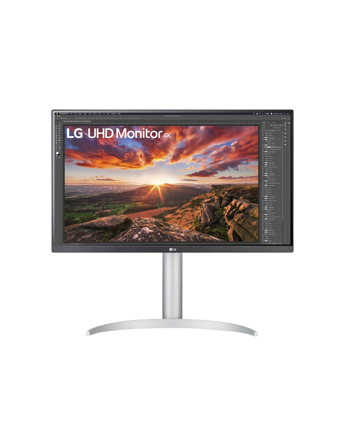 LG 27UP850K-W.AEU monitor. Dimensioni diagonale schermo: 68,6 cm (27"), Risoluzione del display: 3840 x 2160 Pixel, Tipologia HD: 4K Ultra HD, Tecnologia display: LED, Tempo di risposta: 5 ms, Rapporto d'aspetto nativo: 16:9, Angolo di visualizzazione (orizzontale): 178°, Angolo di visualizzazione (verticale): 178°. Altoparlanti incorporati. Montaggio standard VESA, Regolazione altezza. Colore del prodotto: Nero