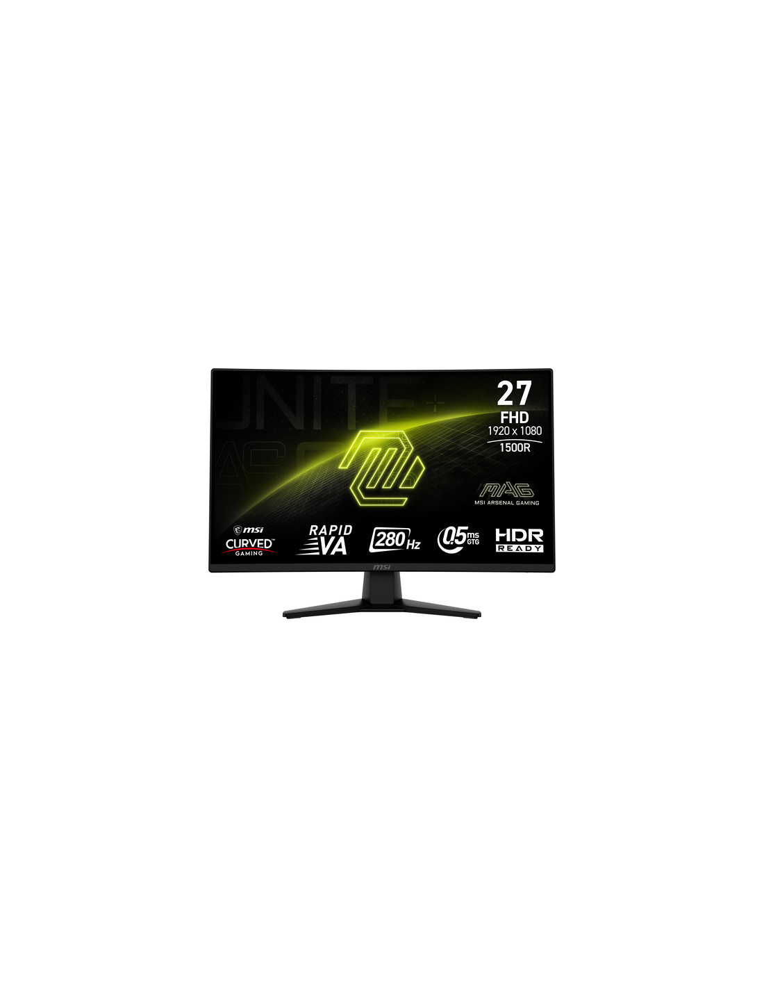 MSI MAG 274CXF. Dimensioni diagonale schermo: 68,6 cm (27"), Risoluzione del display: 1920 x 1080 Pixel, Tipologia HD: Full HD, Tempo di risposta: 0,5 ms, Rapporto d'aspetto nativo: 16:9, Angolo di visualizzazione (orizzontale): 178°, Angolo di visualizzazione (verticale): 178°. Montaggio standard VESA. Colore del prodotto: Nero