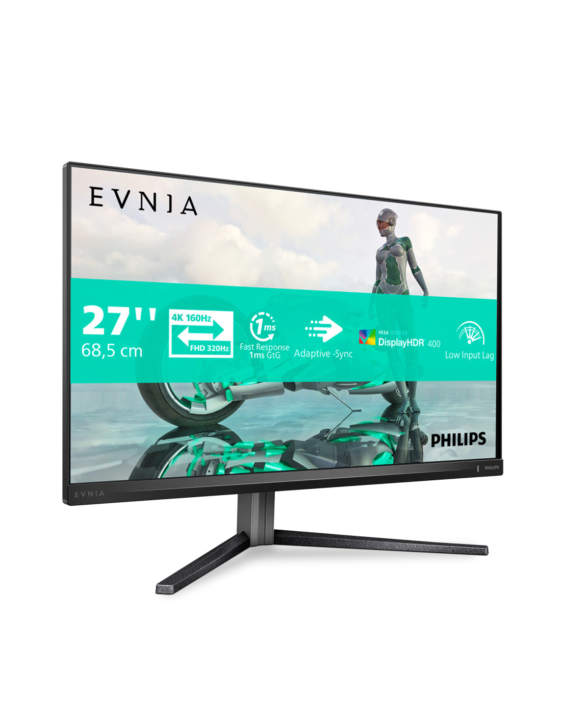 Scopri una nuova frontiera del gioco con la modalità a doppia risoluzione del monitor Evnia. Possibilità di passare facilmente da 3840 x 2160 a 160 Hz a 1920 x 1080 a 320 Hz con un semplice tasto di commutazione per una versatilità e prestazioni senza precedenti.