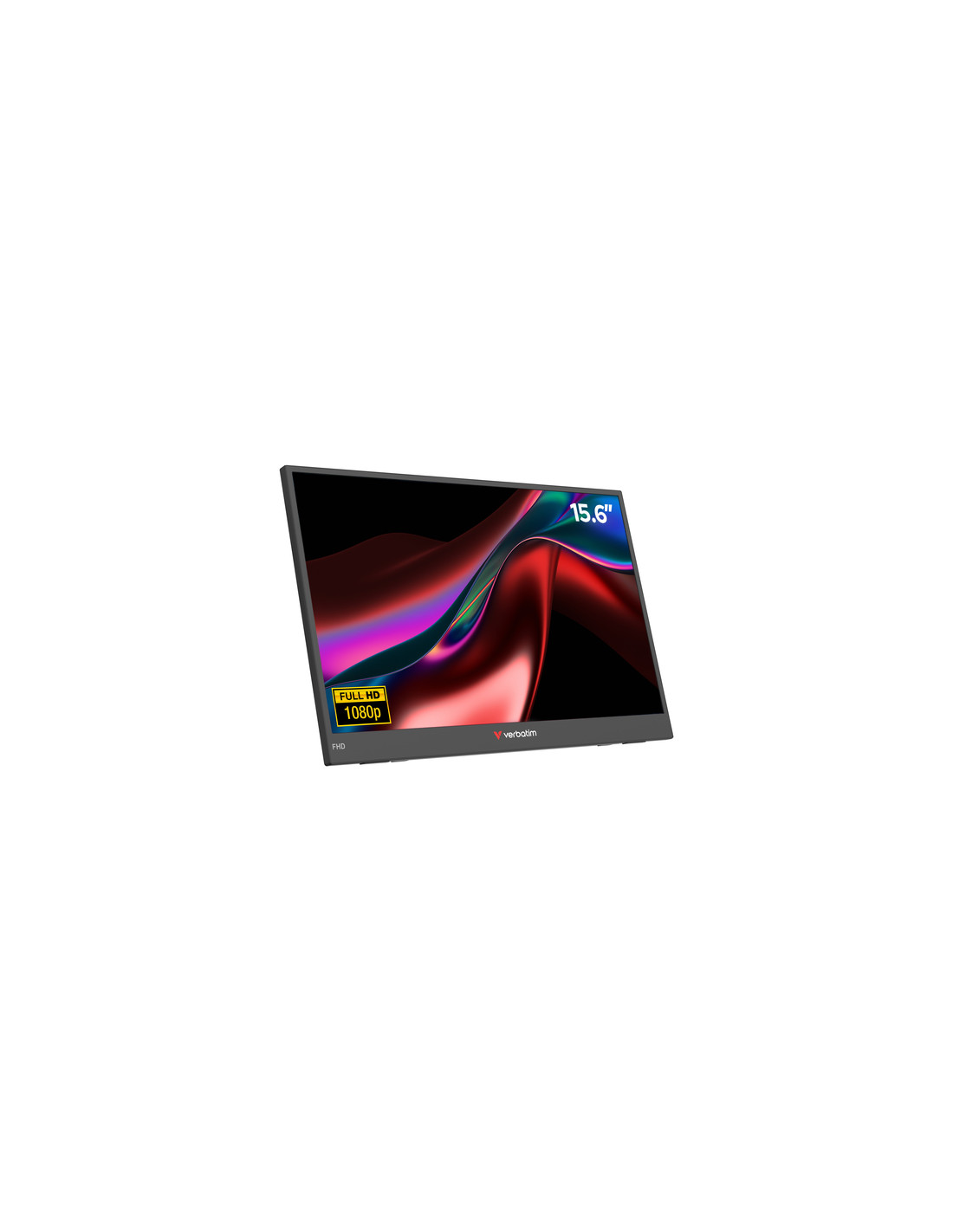 Verbatim Portable 15.6" FHD Monitor LIGHT. Dimensioni diagonale schermo: 39,6 cm (15.6"), Tecnologia display: LCD, Risoluzione del display: 1920 x 1080 Pixel. Potenza in uscita (RMS): 1 W. Tipo di porta USB: USB tipo-C, Connessione cuffia: 3,5 mm. Tipo di prodotto: Monitor portatile, Colore del prodotto: Nero, Materiale della scocca: Plastica. Consumi: 10 W, Classe di efficienza energetica (SDR): A, Tipologia alimentazione: dC