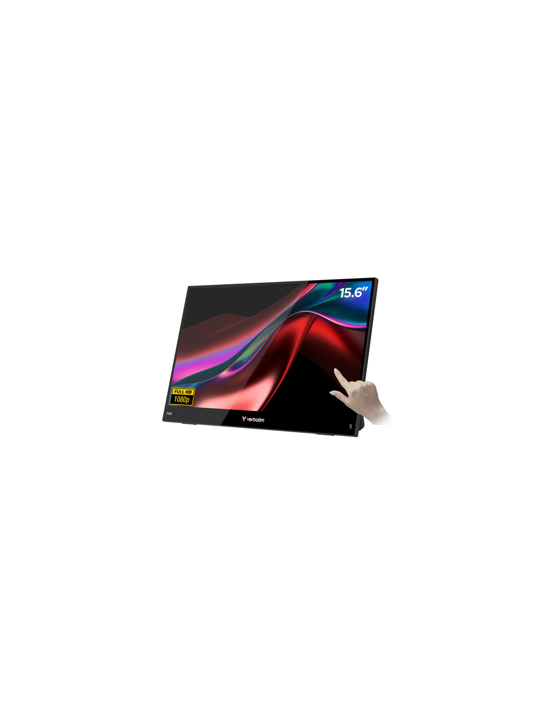 Verbatim Portable 15.6" FHD Touch Monitor LIGHT. Dimensioni diagonale schermo: 39,6 cm (15.6"), Tecnologia display: LCD, Risoluzione del display: 1920 x 1080 Pixel. Potenza in uscita (RMS): 1 W. Tipo di porta USB: USB tipo-C, Connessione cuffia: 3,5 mm. Tipo di prodotto: Monitor portatile, Colore del prodotto: Nero, Materiale della scocca: Plastica. Consumi: 10 W, Classe di efficienza energetica (SDR): A, Tipologia alimentazione: dC