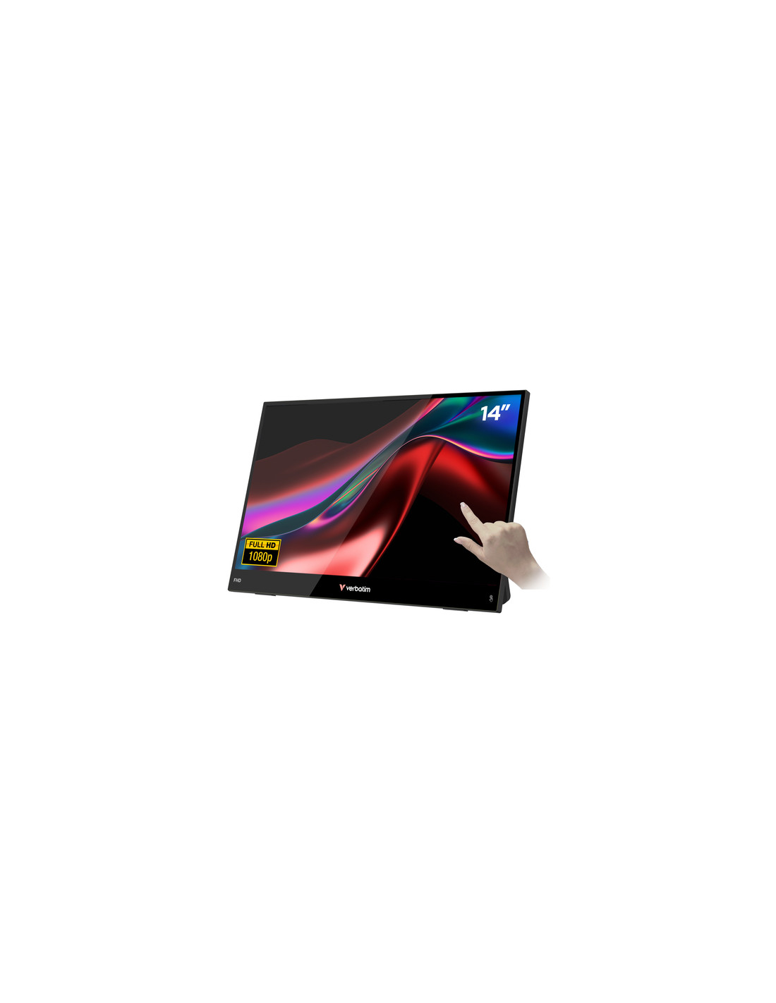 Verbatim Portable 14" FHD Touch Monitor LIGHT. Dimensioni diagonale schermo: 35,6 cm (14"), Tecnologia display: LCD, Risoluzione del display: 1920 x 1080 Pixel. Potenza in uscita (RMS): 1 W. Tipo di porta USB: USB tipo-C, Connessione cuffia: 3,5 mm. Tipo di prodotto: Monitor portatile, Colore del prodotto: Nero, Materiale della scocca: Plastica. Consumi: 10 W, Classe di efficienza energetica (SDR): A, Tipologia alimentazione: dC