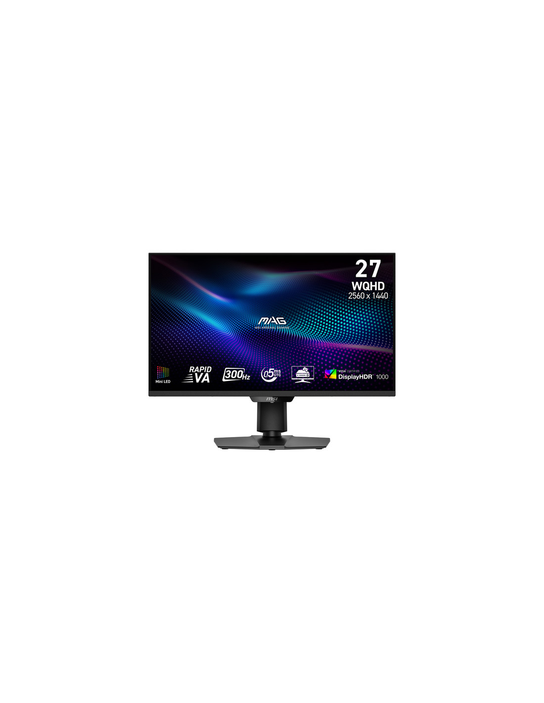 MSI MAG 274QPF X30MV. Dimensioni diagonale schermo: 68,6 cm (27"), Risoluzione del display: 2560 x 1440 Pixel, Tipologia HD: Wide Quad HD, Tecnologia display: LCD, Tempo di risposta: 0,5 ms, Rapporto d'aspetto nativo: 16:9, Angolo di visualizzazione (orizzontale): 178°, Angolo di visualizzazione (verticale): 178°. Montaggio standard VESA. Colore del prodotto: Nero