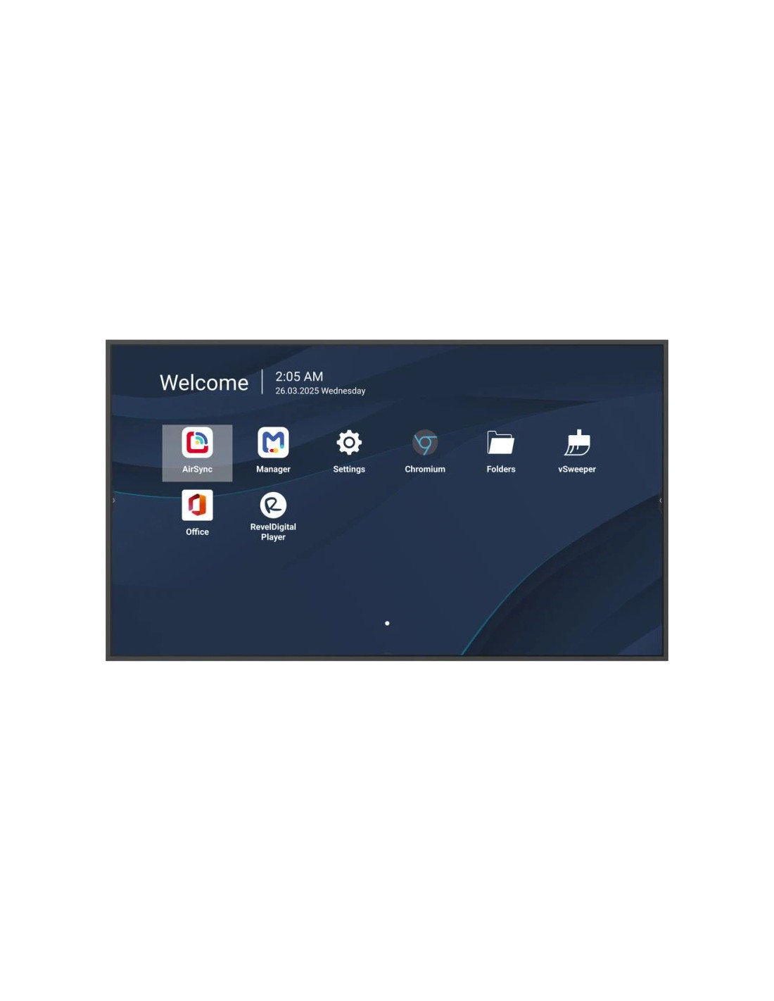 Viewsonic CDE8614-2C. Design del prodotto: Pannello piatto per segnaletica digitale. Dimensioni diagonale schermo: 2,18 m (86"), Tecnologia display: LCD, Risoluzione del display: 3840 x 2160 Pixel, Luminosità schermo: 500 cd/m², Tipologia HD: 4K Ultra HD. Wi-Fi. Ore di servizio (ore/giorni): 24/7. Sistema operativo incluso: Android 14. Colore del prodotto: Nero
