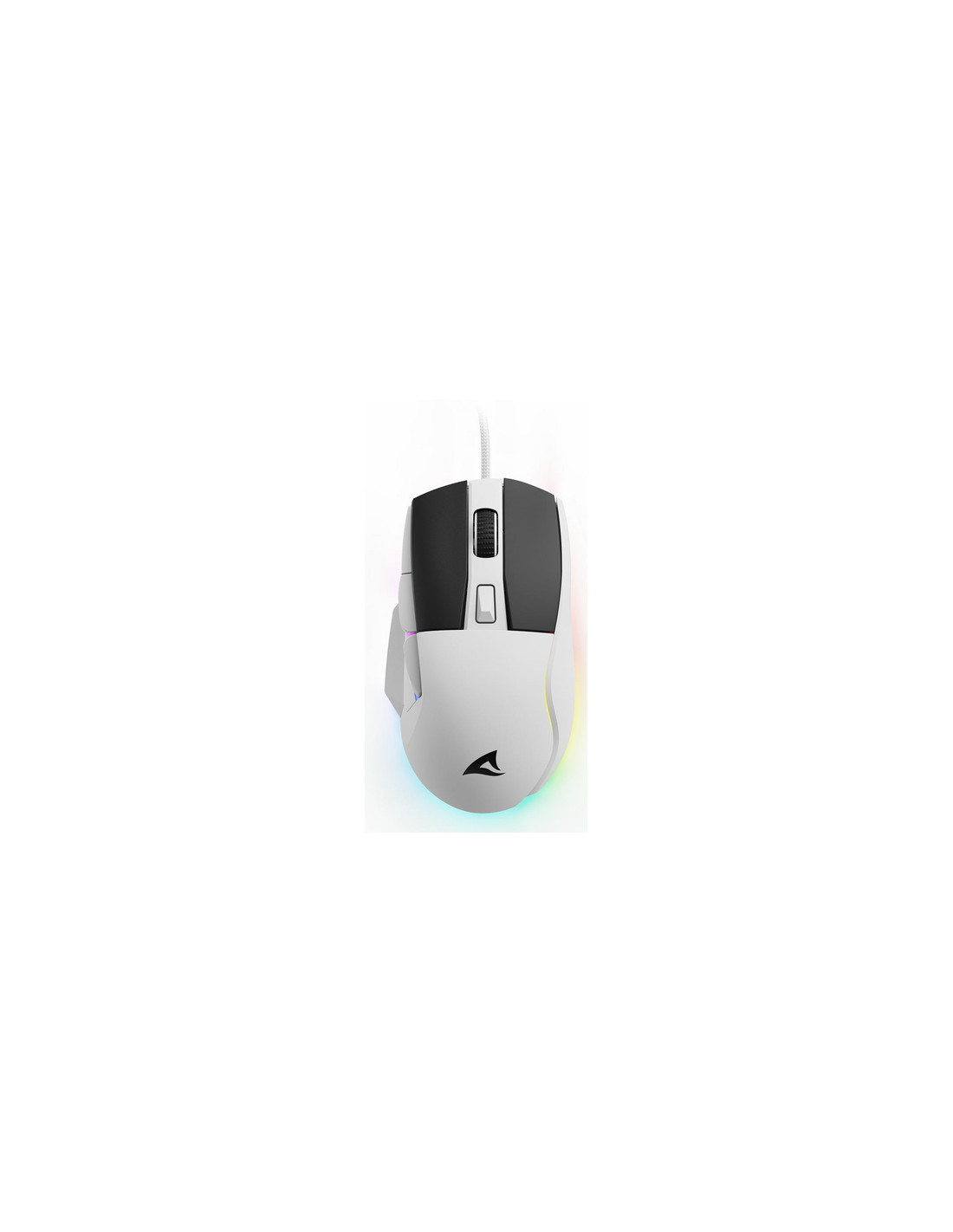 Sharkoon SGM35. Fattore di forma: Mano destra. Tecnologia di rilevamento del movimento: Ottico, Interfaccia dispositivo: USB tipo A, Risoluzione movimento: 6400 DPI, Tipo di pulsanti: Tasti premuti, Numero di tasti: 6, Tipo di scorimmento: Rotella, Accelerazione (max): 20 G. colore d'illuminazione: Multi. Alimentazione: Cavo. Colore del prodotto: Bianco