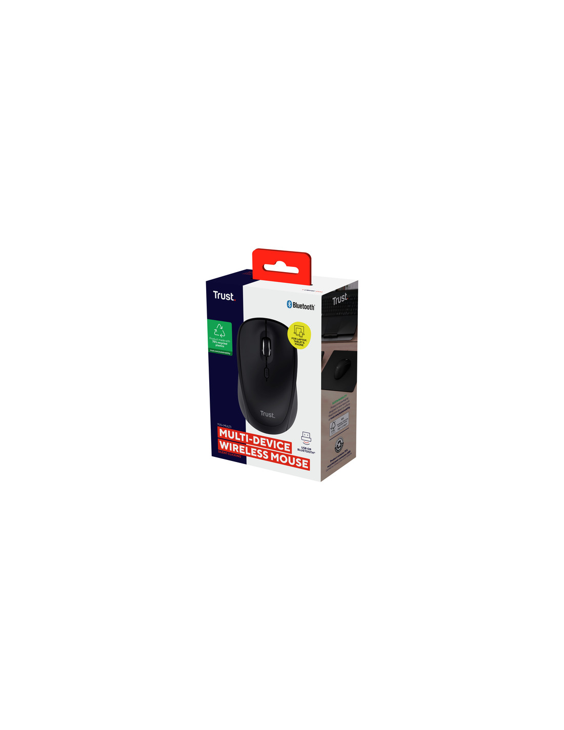 Con una valutazione Clevergreen 4*, il mouse Yvi+ è realizzato con il 75% di plastica riciclata ed è imballato con un packaging plastic-free, per lavorare in modo più sostenibile che mai.