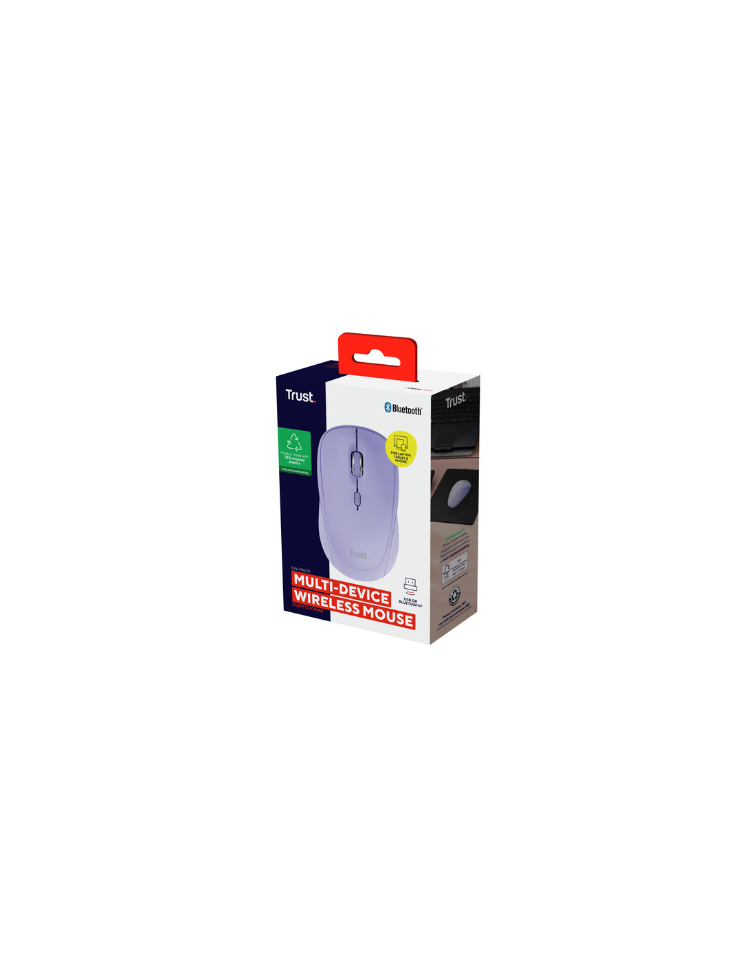 Con una valutazione Clevergreen 4*, il mouse Yvi+ è realizzato con il 75% di plastica riciclata ed è imballato con un packaging plastic-free, per lavorare in modo più sostenibile che mai.