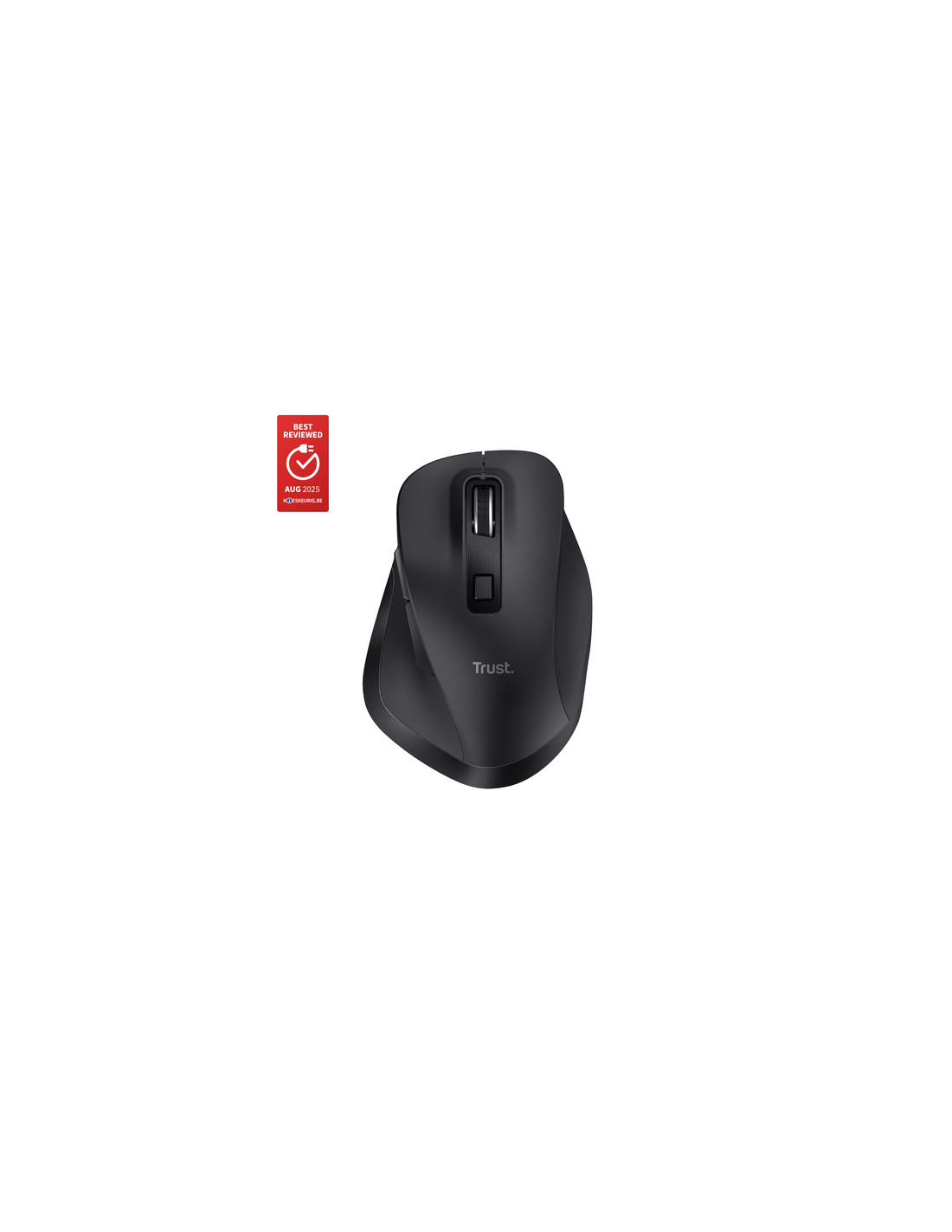 Trust Fyda. Fattore di forma: Mano destra. Tecnologia di rilevamento del movimento: Ottico, Interfaccia dispositivo: RF senza fili + Bluetooth, Risoluzione movimento: 2400 DPI, Tipo di pulsanti: Tasti premuti, Numero di tasti: 6, Tipo di scorimmento: Rotella. Alimentazione: Batterie. Colore del prodotto: Nero