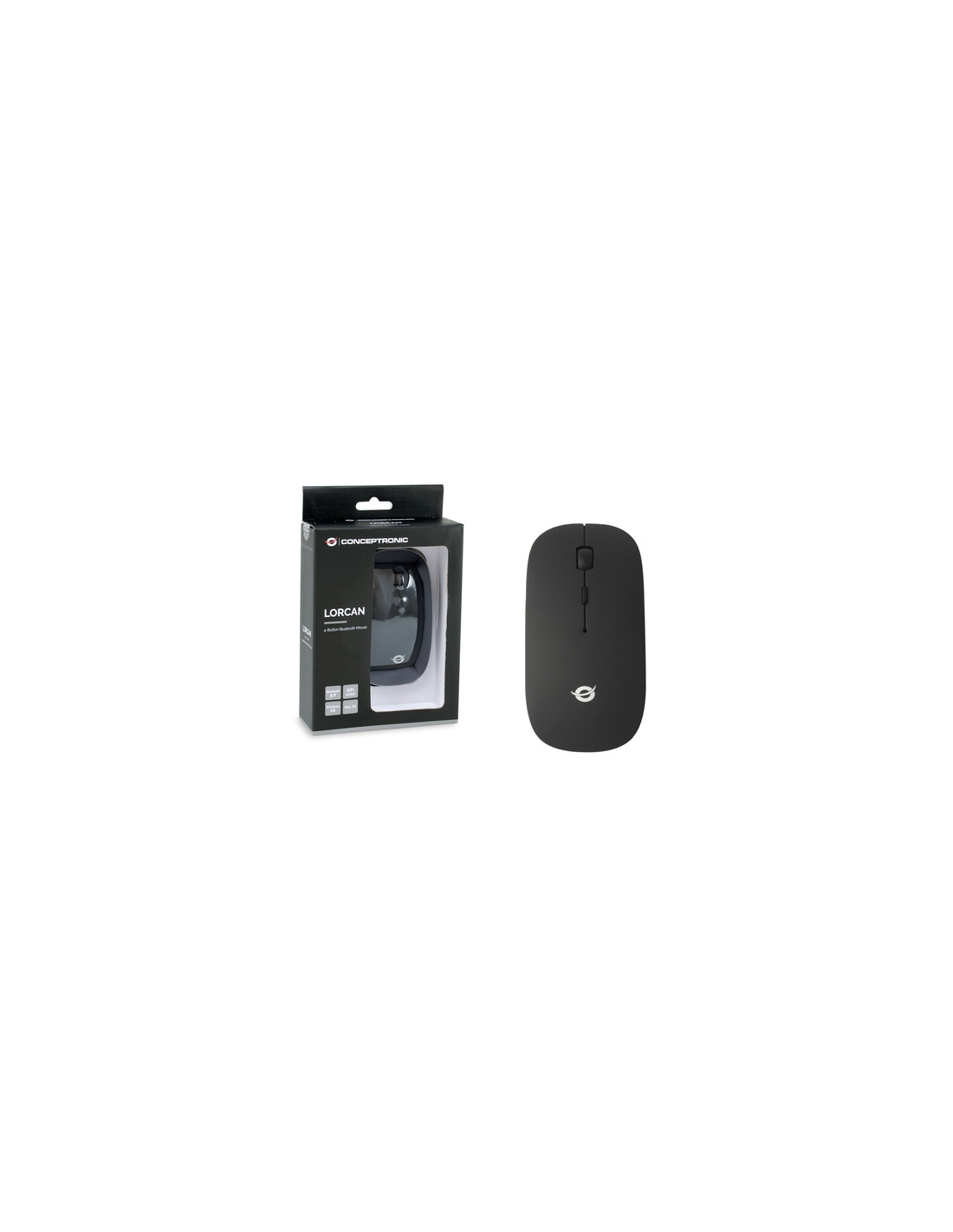 Conceptronic LORCAN01B. Fattore di forma: Ambidestro. Tecnologia di rilevamento del movimento: Ottico, Interfaccia dispositivo: Bluetooth, Risoluzione movimento: 1600 DPI, Tipo di pulsanti: Tasti premuti, Numero di tasti: 2, Tipo di scorimmento: Rotella. Alimentazione: Batterie. Colore del prodotto: Nero