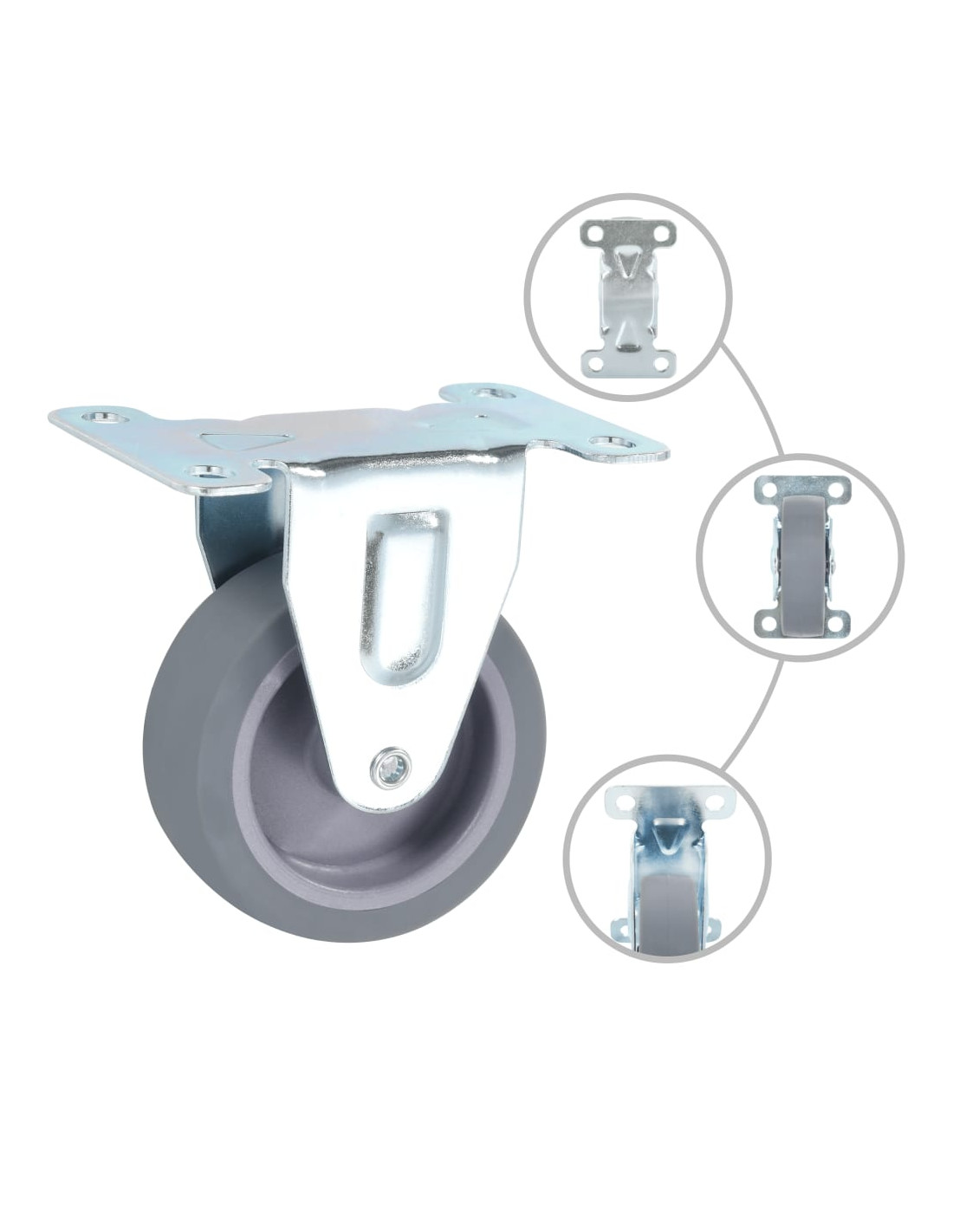 Questo set, composto da 24 rotelle fisse, costituisce l'accessorio perfetto per attrezzature e mobili di piccole dimensioni come banchi da lavoro, carrelli, tavolini da caffè, piantane, scaffali, carrelli della spesa, etc. Le ruote sono realizzate in TPR (gomma termoplastica), un materiale caratterizzato da un'ottima resistenza agli urti e alle vibrazioni e che consente alle ruote di girare in modo fluido e silenzioso. La loro superficie morbida, inoltre, protegge efficacemente il pavimento dai graffi. La struttura in ferro zincato è altamente resistente alla ruggine e fornisce una maggiore robustezza e durata alle ruote. Ogni ruota possiede una capacità di carico massima di 45 kg. La consegna include 24 rotelle fisse.