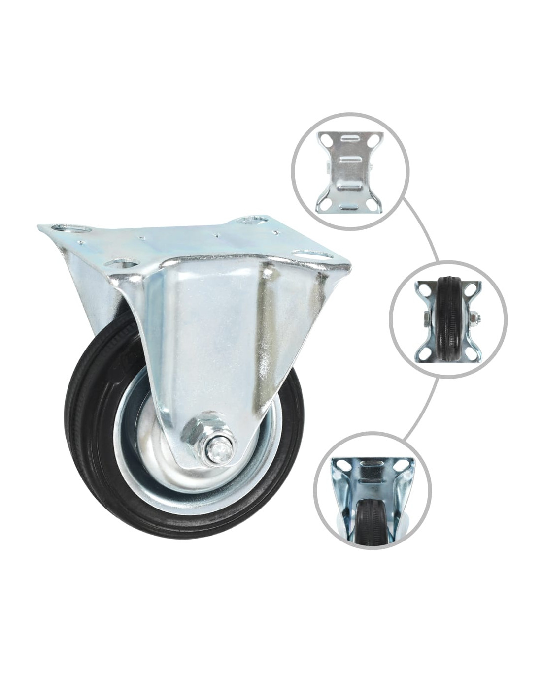 Questo set, composto da 32 rotelle fisse, costituisce l'accessorio perfetto per attrezzature e mobili di piccole dimensioni come banchi da lavoro, carrelli, tavolini da caffè, piantane, scaffali, carrelli della spesa, etc. Le ruote sono realizzate in gomma, un materiale che si distingue per una buona resistenza agli urti e alle vibrazioni e che consente alle ruote di girare in modo fluido e silenzioso. La loro superficie morbida, inoltre, protegge efficacemente il pavimento dai graffi. La struttura in ferro zincato è altamente resistente alla ruggine e garantisce maggiore robustezza e durata delle ruote. Ogni ruota è dotata di una capacità di carico massima di 50 kg. La consegna include 32 rotelle fisse.
