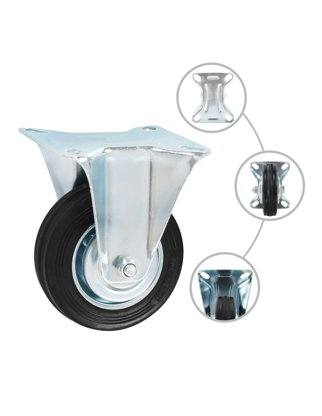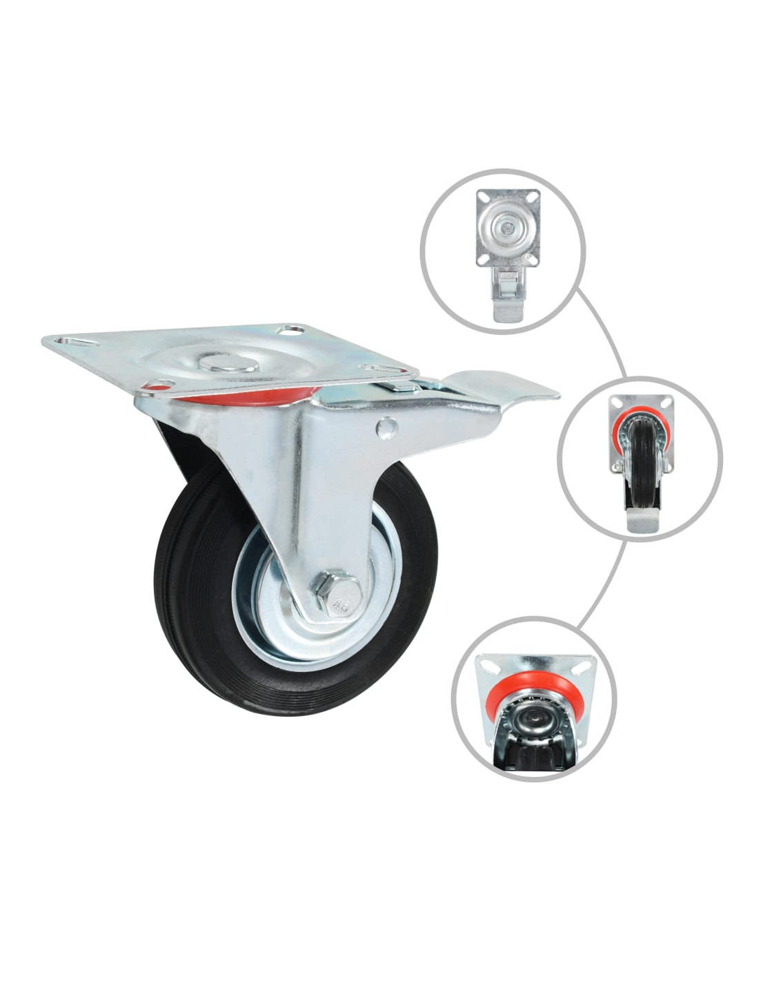 Questo set, composto da 8 rotelle, costituisce l'accessorio perfetto per attrezzature e mobili di piccole dimensioni come banchi da lavoro, carrelli, tavolini da caffè, piantane, scaffali, carrelli della spesa, etc. Le ruote sono realizzate in gomma, un materiale che si distingue per una buona resistenza agli urti e alle vibrazioni e che consente alle ruote di girare in modo fluido e silenzioso. La loro superficie morbida, inoltre, protegge efficacemente il pavimento dai graffi. La struttura in ferro zincato è altamente resistente alla ruggine e garantisce maggiore robustezza e durata delle ruote. Metà delle ruote girevoli sono dotate di sistema frenante per garantire una maggiore flessibilità di utilizzo. Ogni ruota ha una capacità di carico massima pari a 70 kg. La consegna include 4 ruote fisse e 4 ruote girevoli con freno.