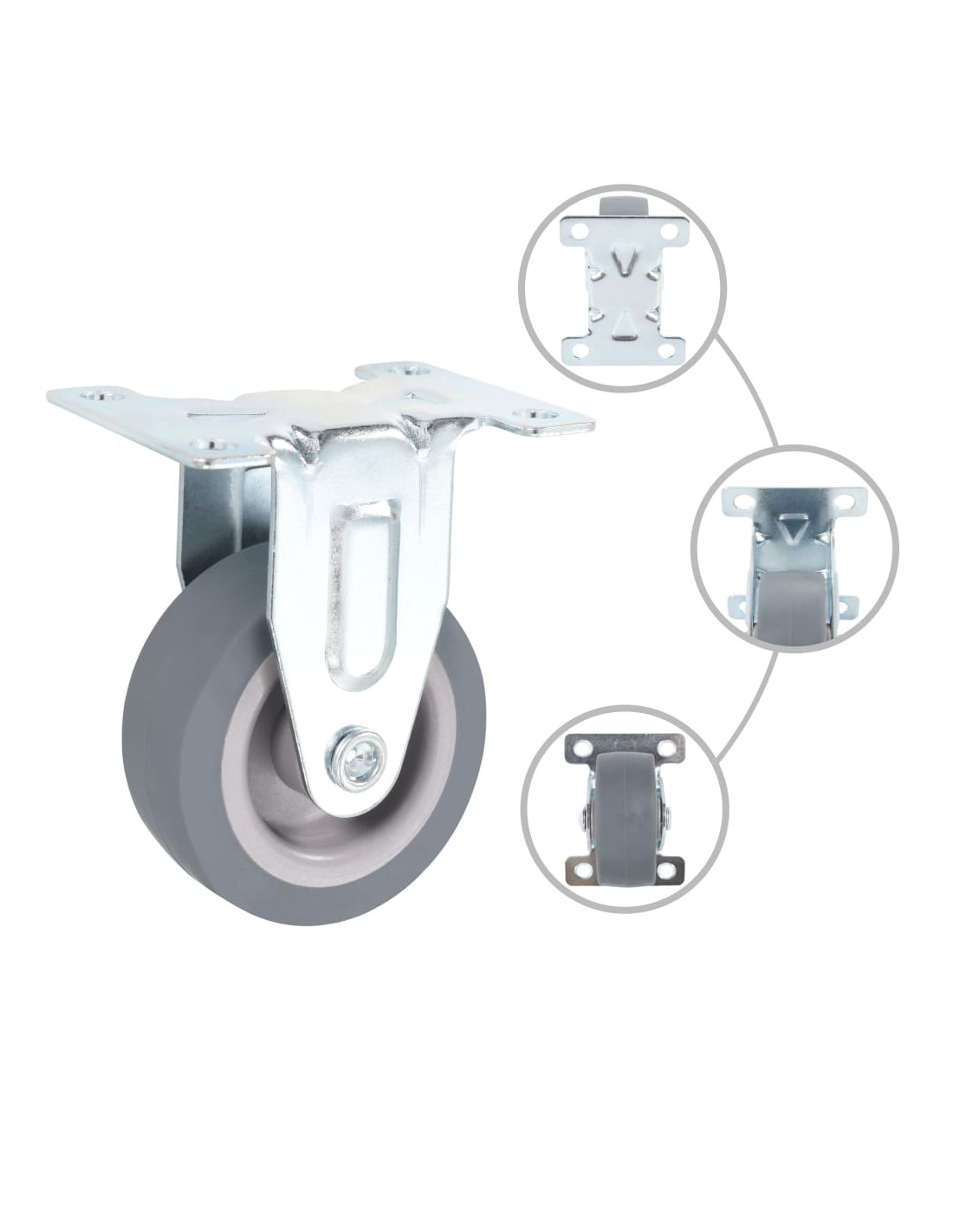 Questo set, composto da 12 rotelle fisse, costituisce l'accessorio perfetto per attrezzature e mobili di piccole dimensioni come banchi da lavoro, carrelli, tavolini da caffè, piantane, scaffali, carrelli della spesa, etc. Le ruote sono realizzate in TPR (gomma termoplastica), un materiale caratterizzato da un'ottima resistenza agli urti e alle vibrazioni e che consente alle ruote di girare in modo fluido e silenzioso. La loro superficie morbida, inoltre, protegge efficacemente il pavimento dai graffi. La struttura in ferro zincato è altamente resistente alla ruggine e fornisce una maggiore robustezza e durata alle ruote. Ogni ruota possiede una capacità di carico massima di 35 kg. La consegna include 12 rotelle fisse.