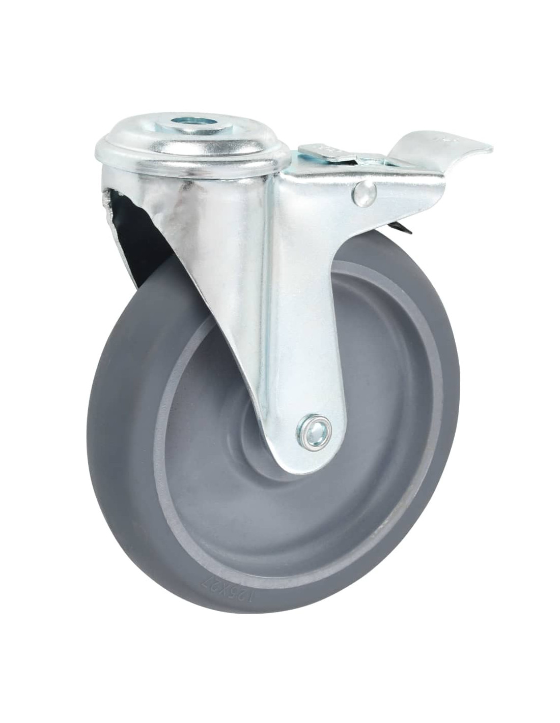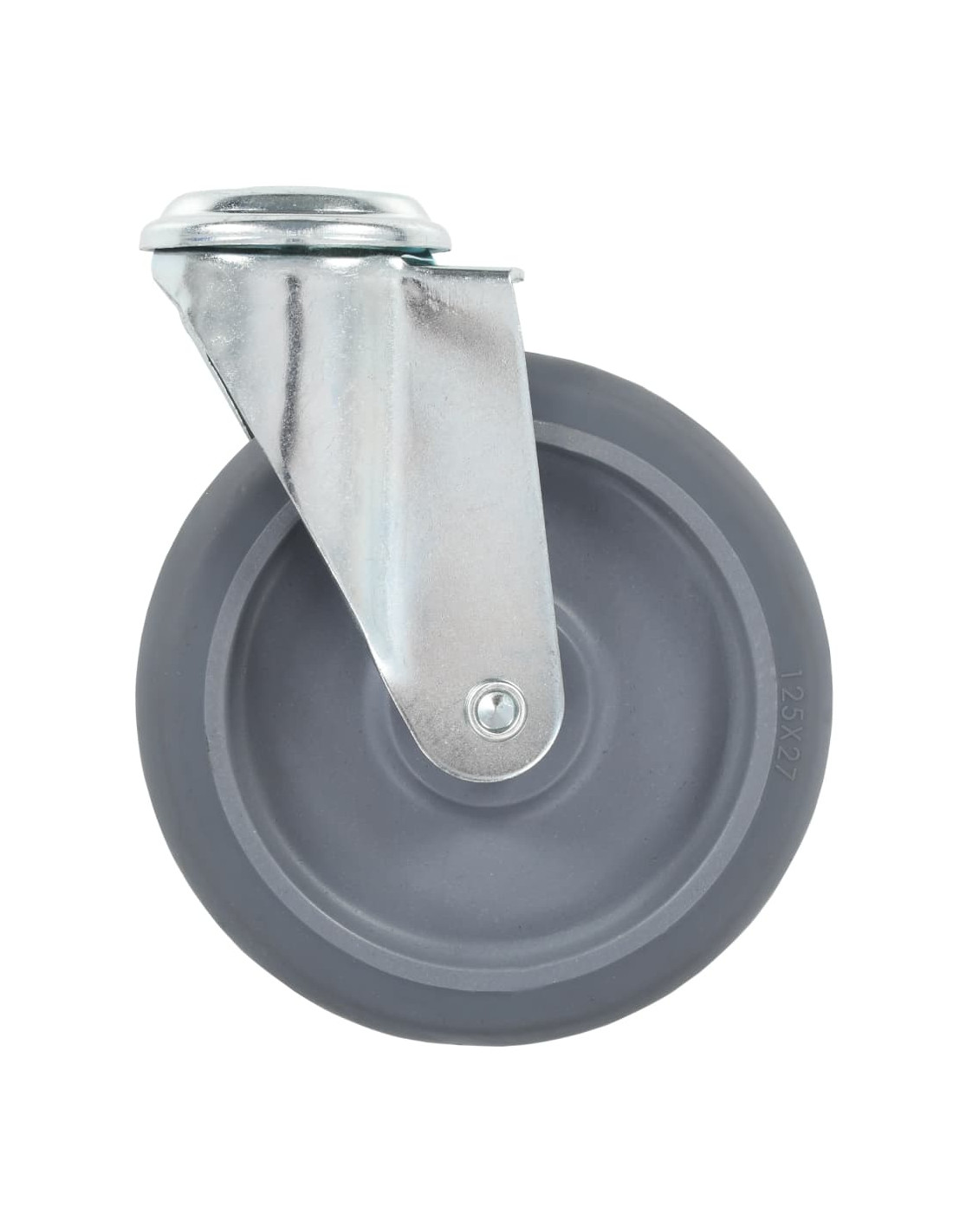 Questo set, composto da 12 rotelle girevoli con foro per bulloni, costituisce l'accessorio perfetto per attrezzature e mobili di piccole dimensioni come banchi da lavoro, carrelli, tavolini da caffè, piantane, scaffali, carrelli della spesa, etc. Le ruote sono realizzate in TPR (gomma termoplastica), un materiale che si distingue per una buona resistenza agli urti e alle vibrazioni e che consente alle ruote di girare in modo fluido e silenzioso. La loro superficie morbida, inoltre, protegge efficacemente il pavimento dai graffi. La struttura in ferro zincato è altamente resistente alla ruggine e garantisce maggiore robustezza e durata delle ruote. Metà delle ruote girevoli sono dotate di sistema frenante per garantire una maggiore flessibilità di utilizzo. Ogni ruota ha una capacità di carico massima pari a 80 kg. La consegna include 6 ruote girevoli con foro per bulloni e 6 ruote girevoli con foro per bulloni con freno.