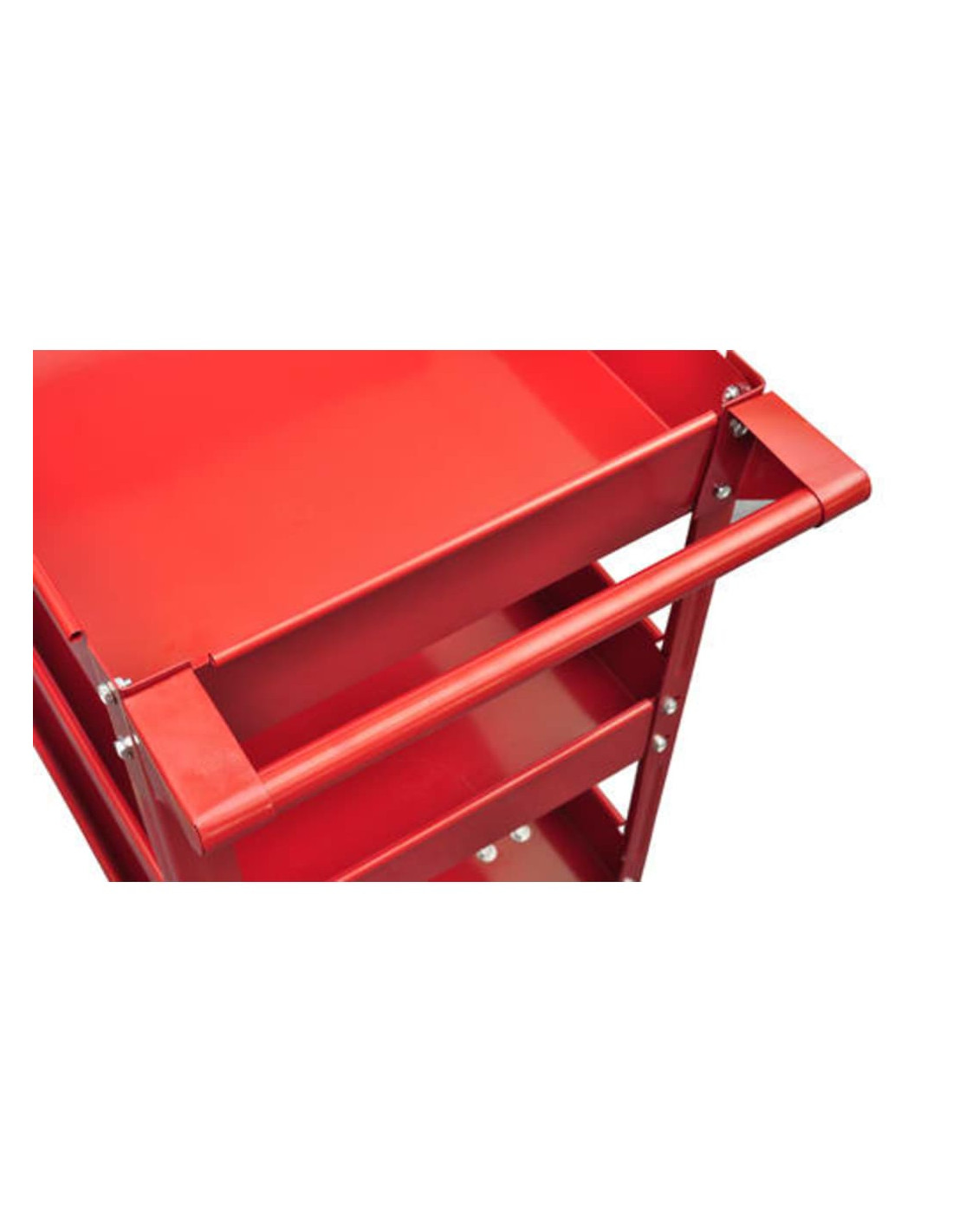 Il carrello portautensili da officina ha una costruzione robusta con 3 ripiani che possono sopportare un carico massimo di 100 kg. Ha una struttura in acciaio laccato. Tutte e 4 le ruote sono girevoli. Infine è presente una comoda maniglia per spingere il carrello.