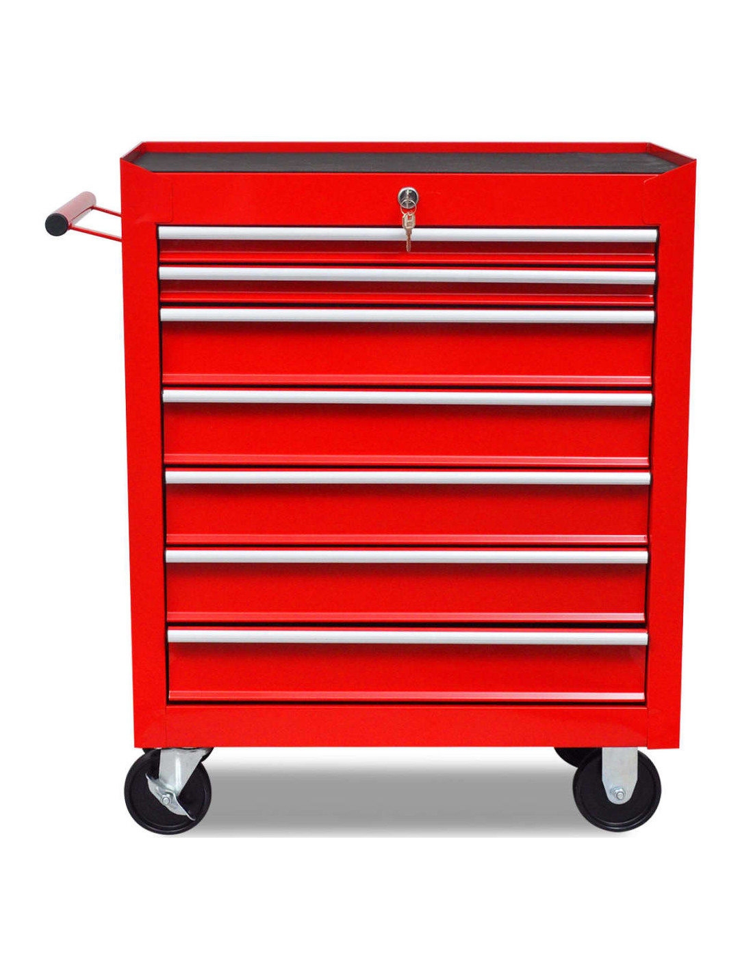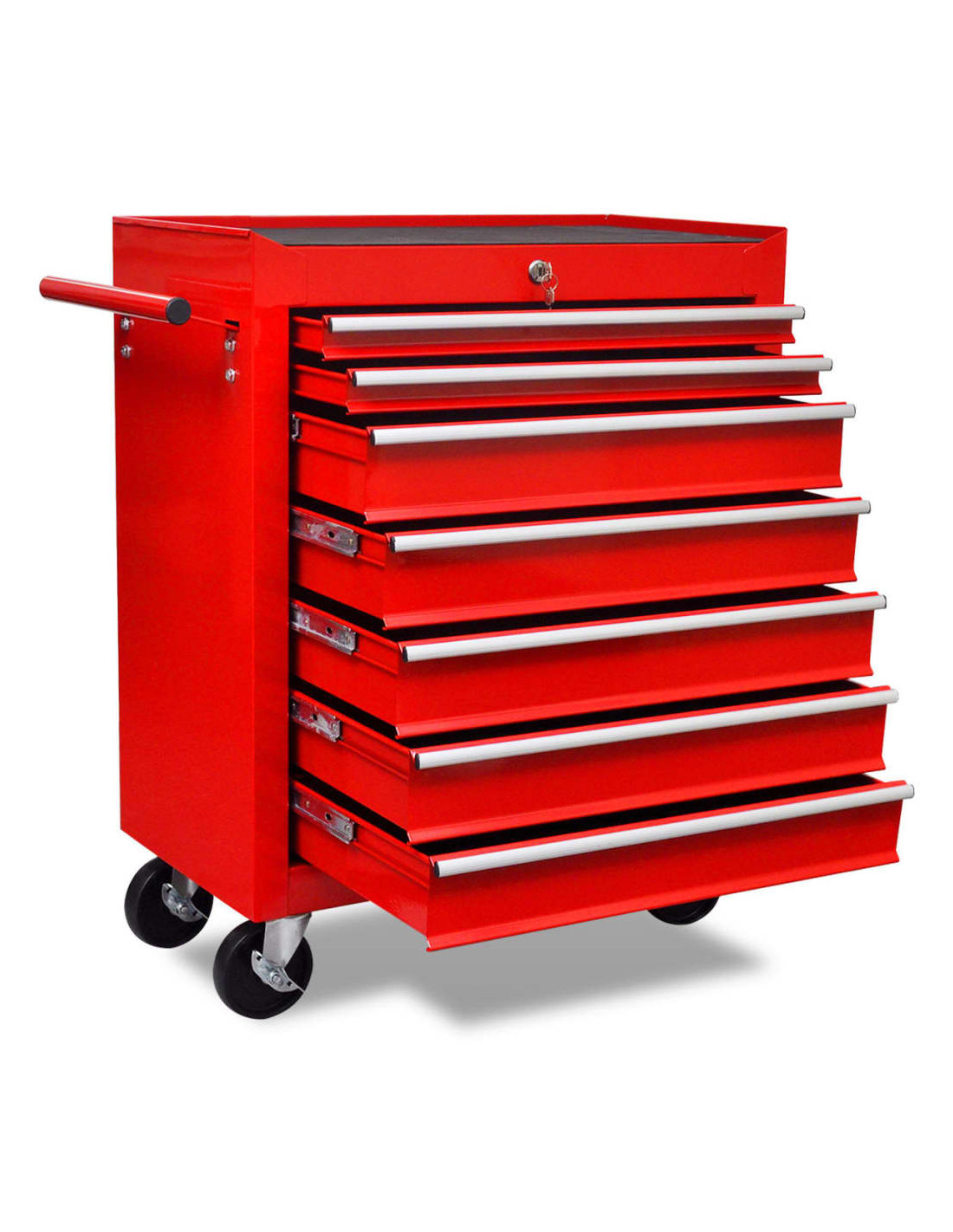 Usa questo carrello comodo con 7 cassetti scorrevoli per depositare e mantenere in ordine i vostri strumenti. Ciascuno dei cassetti ha un rivestimento antiscivolo sul fondo, quindi gli strumenti non scivolano.