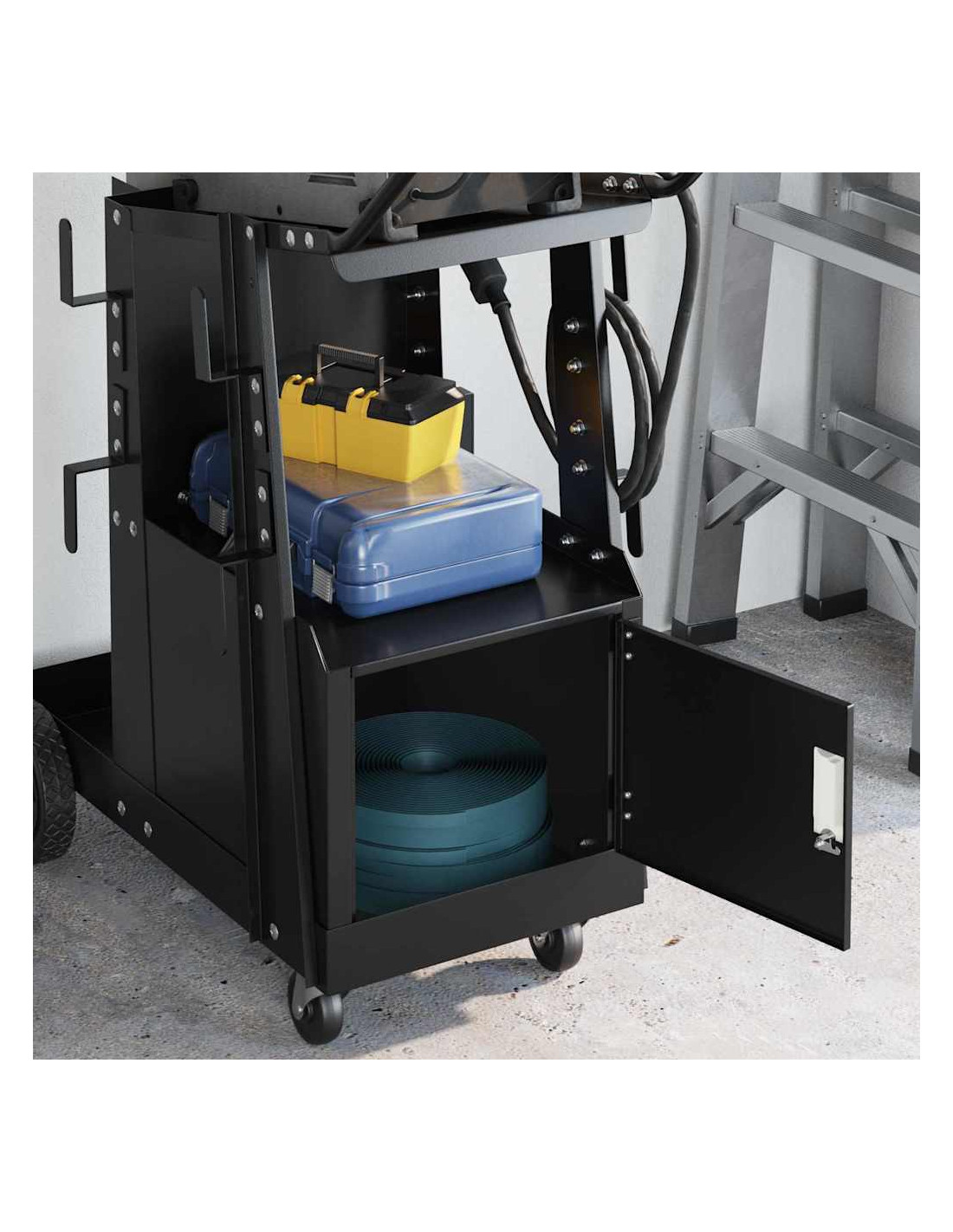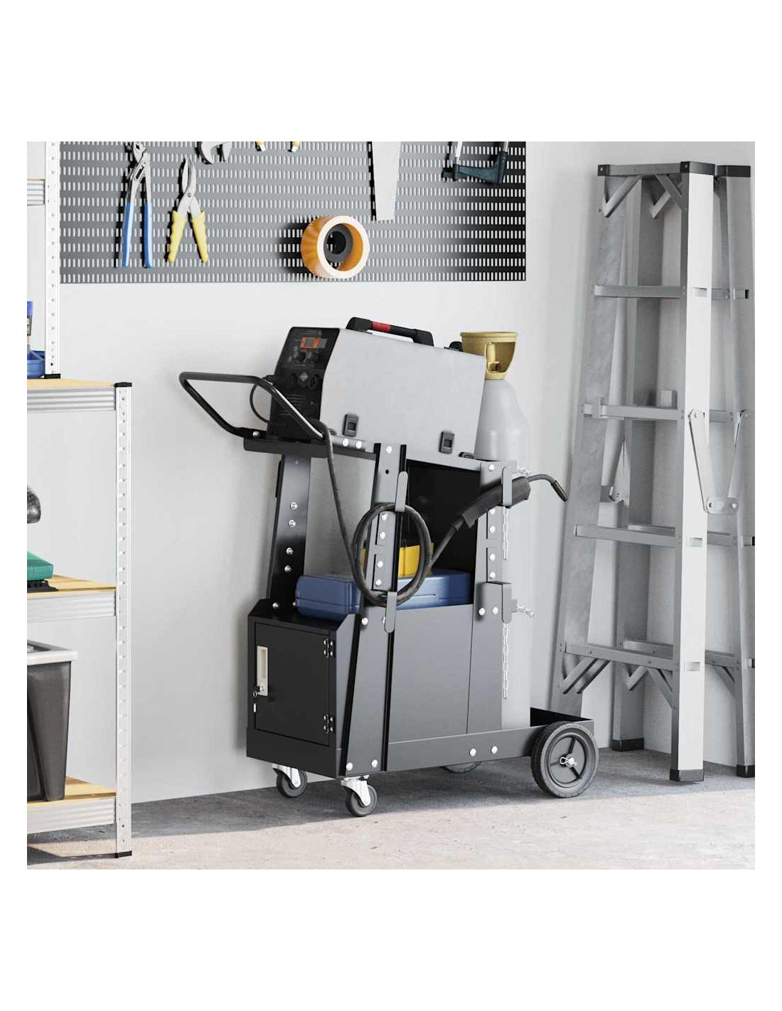 Questo carrello per saldatura in stile industriale unisce praticità e design. Fatta con materiali resistenti e una finitura opaca alla moda, rende super semplice riporre e muovere i tuoi materiali da saldatura. Con la sua linea elegante e costruzione solida, è perfetto per chiunque, dai professionisti agli appassionati di fai-da-te, per migliorare il proprio laboratorio. Se devi spostare attrezzi o mantenerli in ordine, questo carrello è il tuo migliore amico.