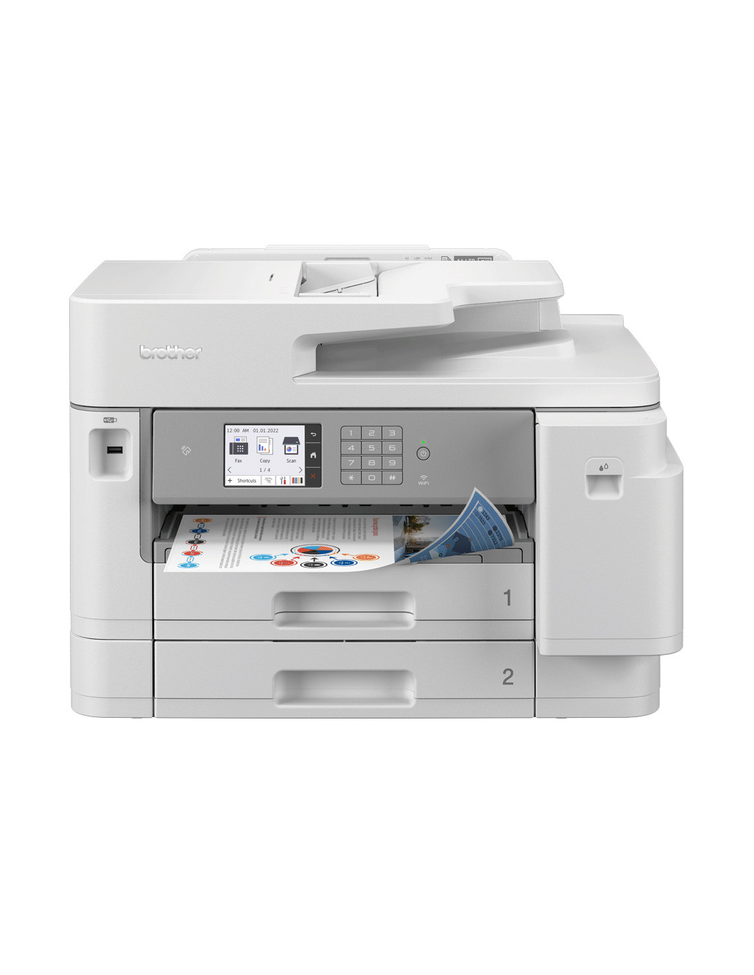 La stampante MFC-J5955DW combina funzionalità aziendali ed efficienza dei costi in un'unica soluzione. La stampa fino al formato A3 e l'alimentatore di documenti da 50 fogli A4 rendono le operazioni di copia e scansione molto più semplici e veloci rispetto al passato. Grazie a MAXIDRIVE, la tecnologia delle testine di stampa di ultima generazione, avrai la certezza che la stampante continui a produrre tutti i documenti di cui hai bisogno. Connettività cablata e wireless Velocità di stampa fino a 30 ipm NFC (Near-Field Communication) per autenticazione sicura, stampa e scansione mobile Stampa, scansione, copia e fax A4 fronte/retro automatica Touchscreen a colori da 8,8 cm Scansione automatica su 2 lati da A4 a 30ipm in bianco e nero e a colori 2 vassoi carta da 250 fogli. Vassoio multiuso da 100 fogli