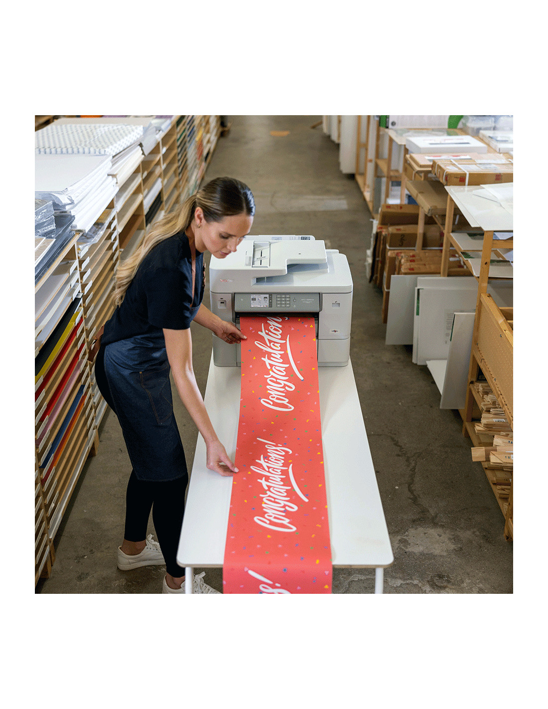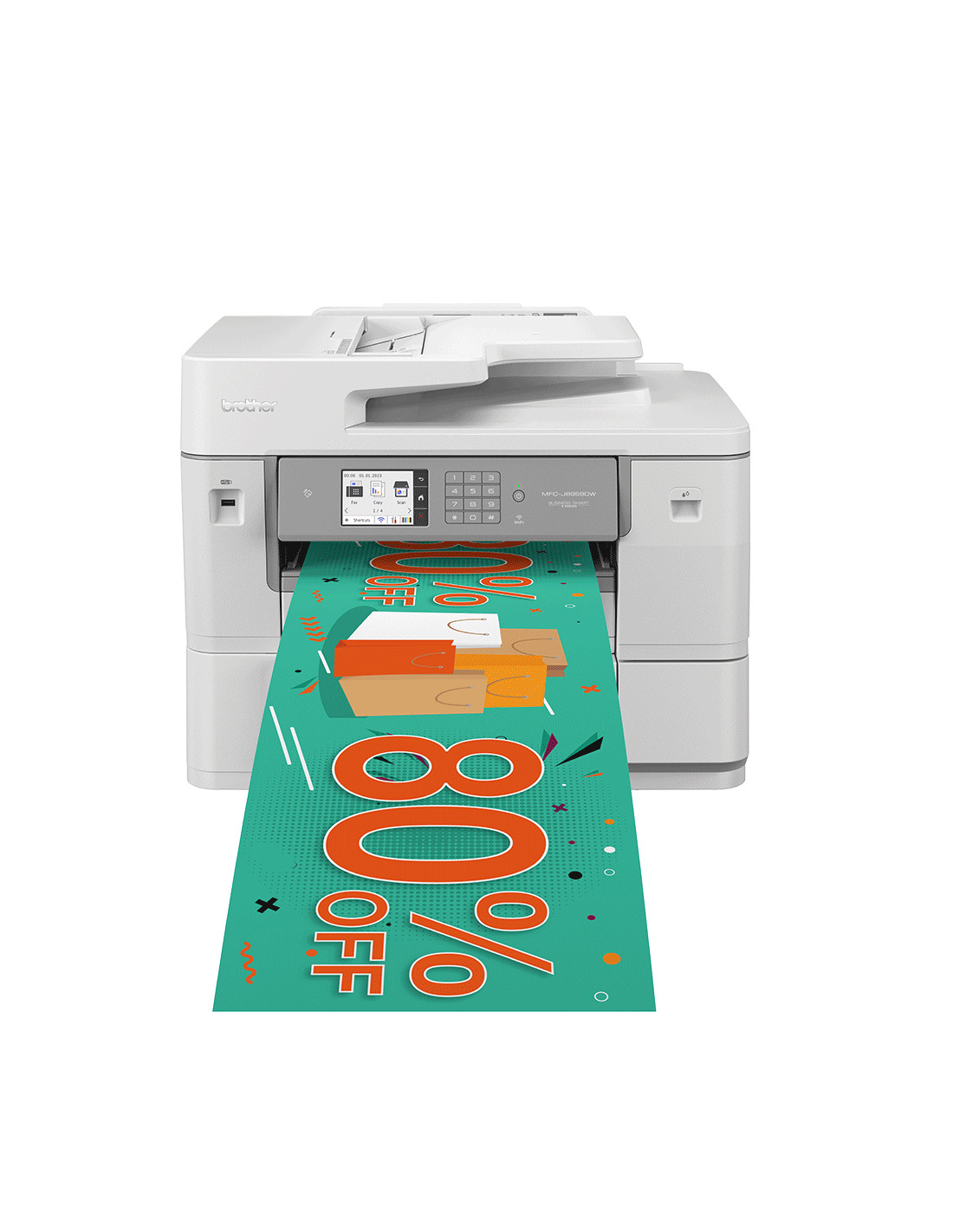 Stampa e scansione A3 e A4 con la possibilità di stampare su carta in rotoli. È possibile stampare facilmente striscioni, poster, foto panoramiche e cartellonistica promozionale, quindi tagliare alla lunghezza desiderata con taglierina automatica inclusa.