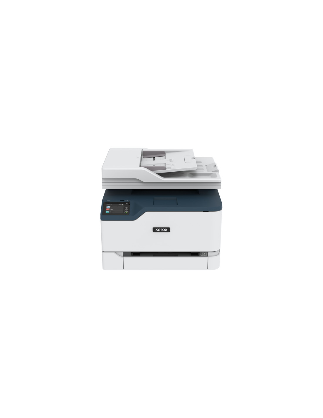La conveniente stampante multifunzione a colori Xerox C235 è progettata per uffici e uffici domestici agili e dinamici che necessitano di un stampante a colori in grado di tenere il passo. Facile da configurare con il software Xerox® Smart Start e immediatamente operativa. Questo dispositivo è stato progettato per ambienti di stampa esigenti, con un'interfaccia utente touch screen a colori da 2,4", alimentatore automatico da 50 fogli, stampa fronte/retro automatica su carta di formato Letter e Legal con capacità carta standard di 250 fogli. Il wireless integrato e la funzionalità Wi-Fi Direct consentono di stampare direttamente da dispositivi mobili e tablet. Progettata per un volume di stampa mensile massimo raccomandato di 1.500 pagine al mese, un processore dual core da 1 GHz, 512 MB memoria e velocità di stampa fino a 24 pagine Letter al minuto/22 pagine A4 al minuto, la stampante a colori C235 è una macchina instancabile. Fate di più con la piattaforma Xerox Workflow Central, che consente di convertire i documenti in altre lingue, trasformare i messaggi scritti a mano in documenti di testo condivisibili, creare file audio di copie cartacee da ascoltare in movimento, oscurare automaticamente contenuti riservati e convertire le scansioni in applicazioni Microsoft Office. Il conseguimento della certificazione EPEAT significa che la C235 soddisfa criteri globali per la progettazione, la produzione, il consumo di energia e il riciclaggio. Xerox garantisce inoltre un efficiente servizio di riciclaggio delle cartucce toner.