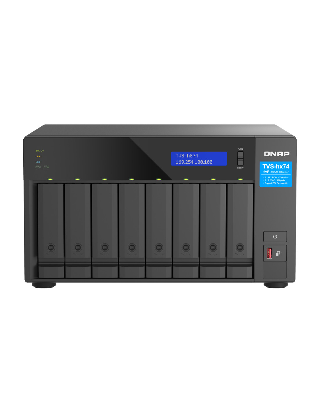 Il TVS-h874 è dotato di due slot M.2 PCIe che consentono la cache SSD o pool di archiviazione SSD per prestazioni migliorate o altre applicazioni.