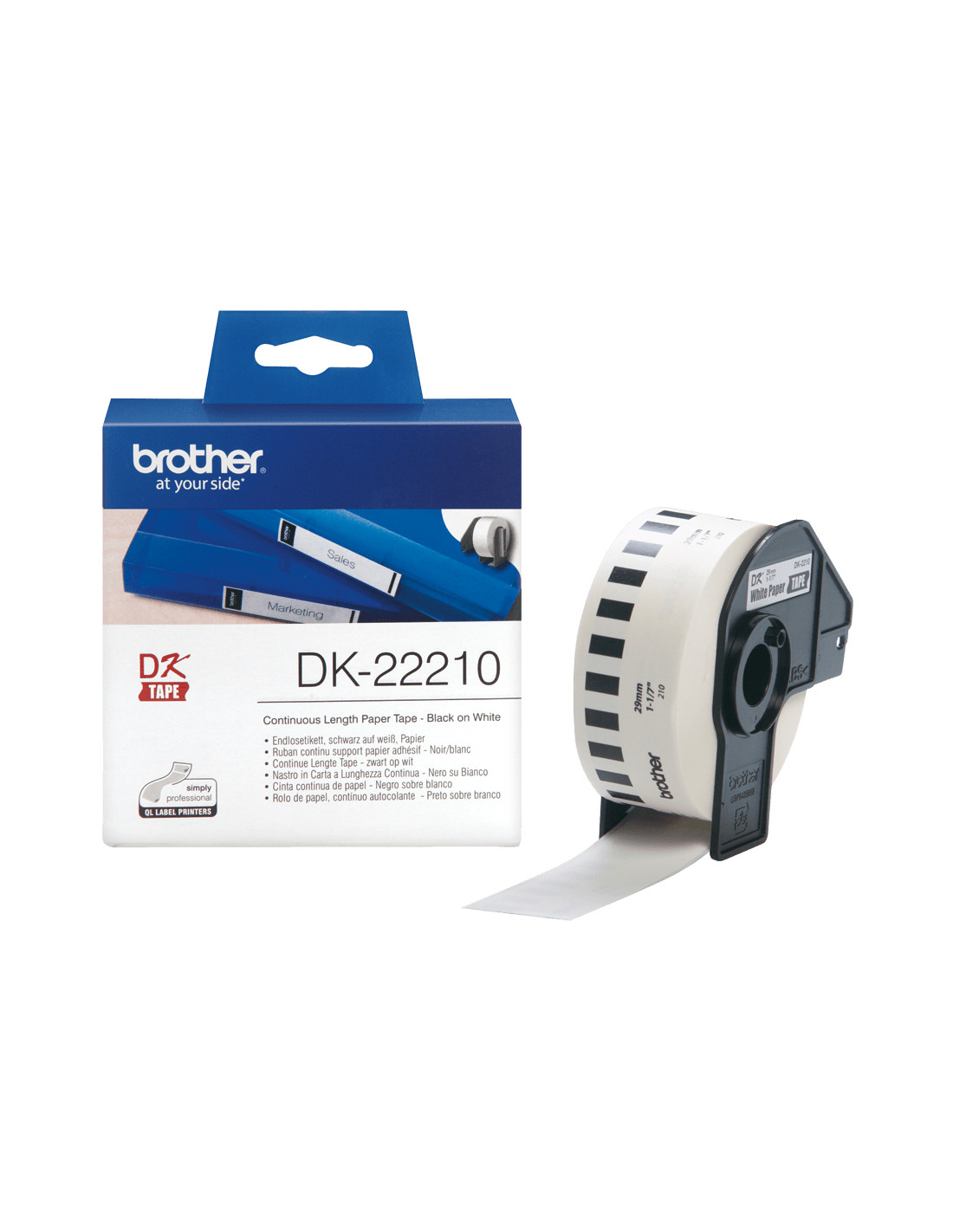 Se stai preparando etichette per buste, cartelline o per contrassegnare scaffali, apprezzerai la possibilità di creare etichette di qualsiasi lunghezza. Il nastro di etichette di carta a lunghezza continua DK-22210 è dotato di un potente adesivo che gli consente di essere incollato in modo permanente. Perciò, ti sarà utile sia al lavoro, in ufficio, sia a casa, nello studio.