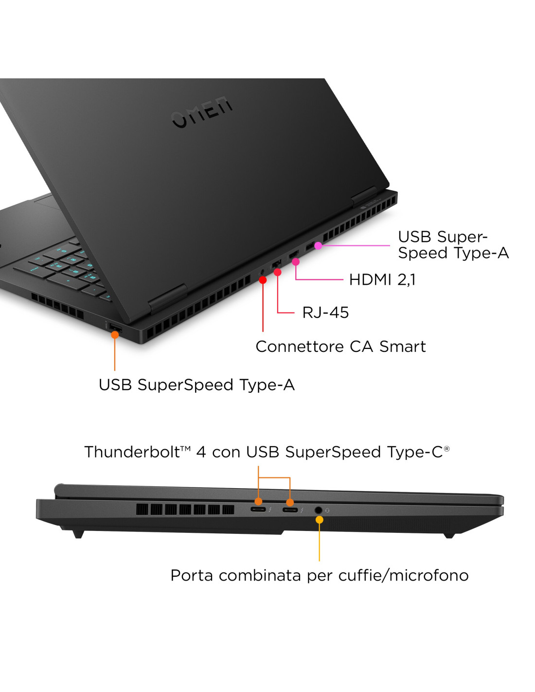 Il laptop da gaming OMEN by HP da 16" è pronto a seguirti ovunque. Gioca con una potenza di livello desktop grazie al processore Intel® Core™ di 14a generazione[1] e alla moderna scheda grafica NVIDIA®, entrambe regolate da un raffreddamento interno avanzato. Il display è altrettanto impressionante: elevata risoluzione, framerate fluido e funzioni antiriflesso.