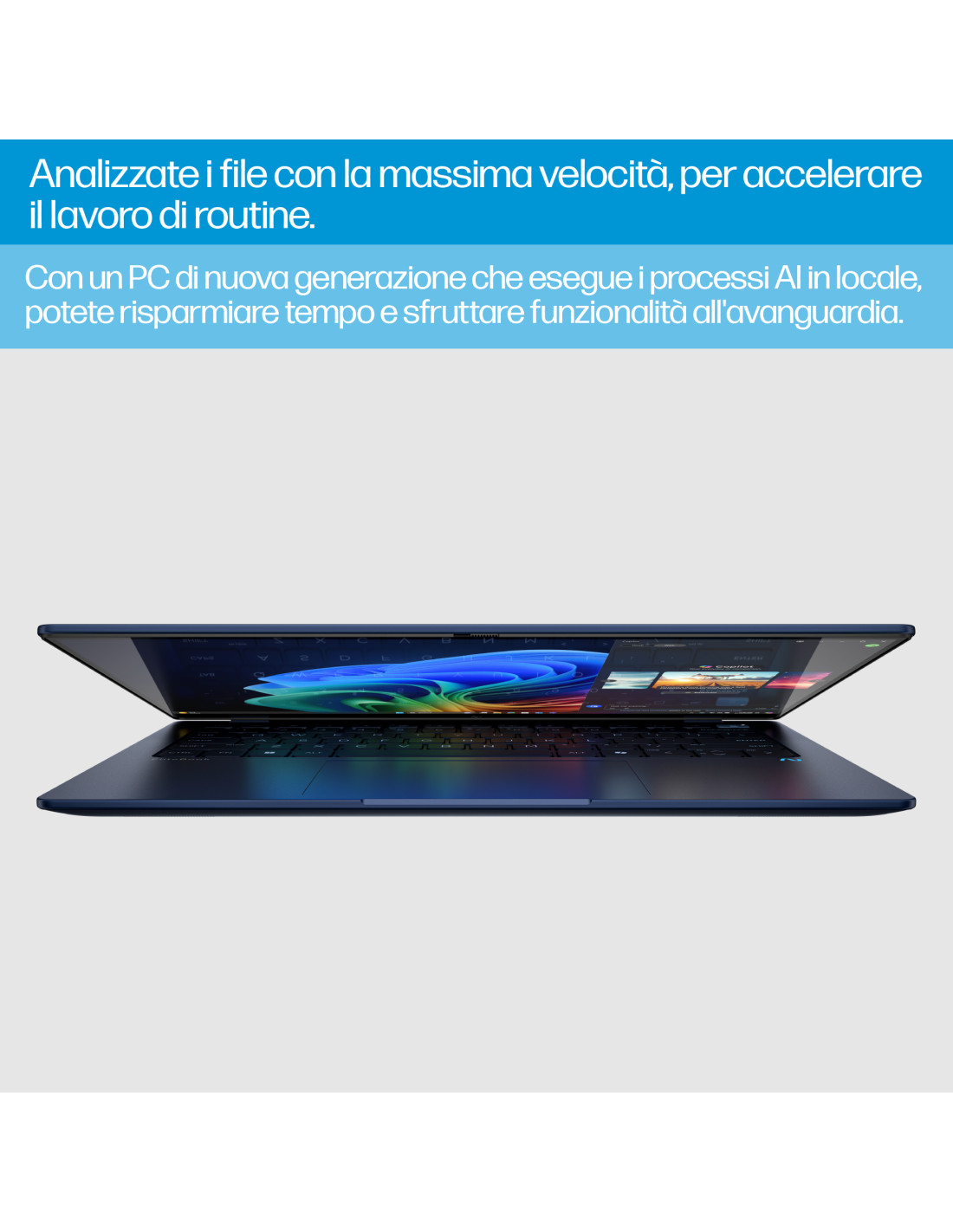 Con un PC ultrasottile basato sull'AI ed espressamente concepito per la nuova era dell'AI, potete evitare di perdere tempo con le attività di routine, dedicandovi completamente al vostro lavoro e a una collaborazione più efficace. HP EliteBook Ultra G1q è un PC altamente reattivo basato sull'AI, progettato per prolungare la durata della batteria. Supporta applicazioni AI[3] che vi permetteranno di liberare la creatività e di valorizzare al meglio le vostre abilità.