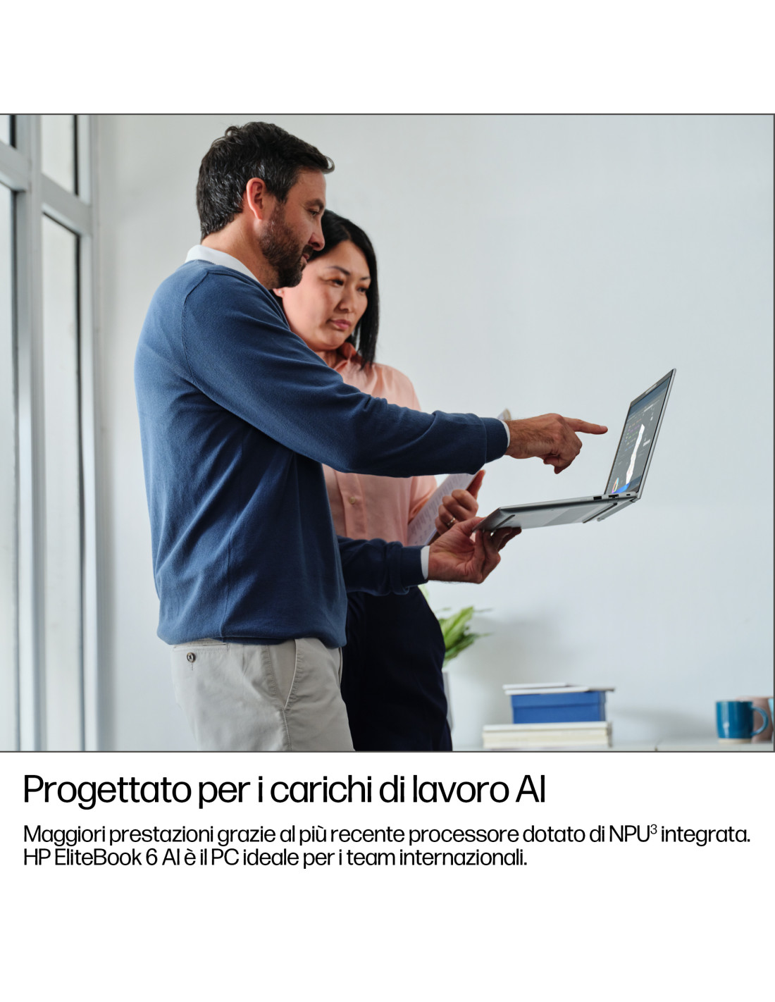 Le esperienze basate su AI e la tecnologia moderna di connettività migliorano la produttività degli utenti. Il PC HP EliteBook 6 G1i AI da 14'' offre una NPU da 11 TOPS[3], sicurezza e gestibilità di livello enterprise in un PC altamente configurabile che soddisfa le esigenze delle aziende.