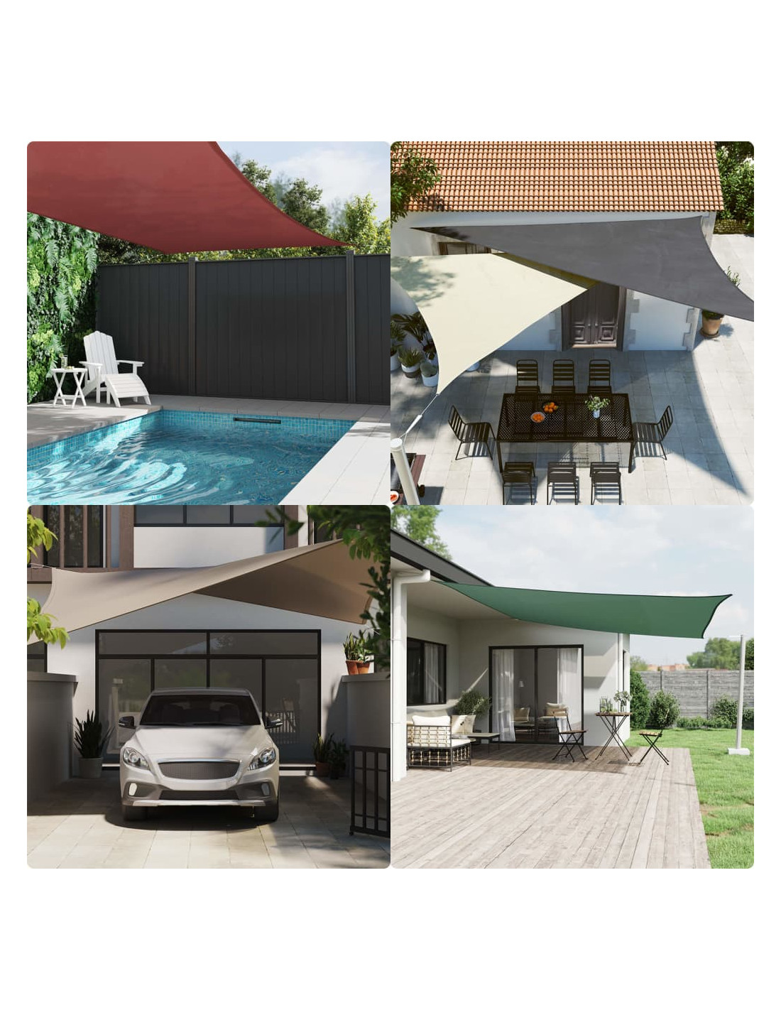 - Facile da usare: La vela ombreggiante, dotata di resistenti anelli a D antiruggine, è posizionata in ciascuno dei quattro angoli. Potete fissarla senza sforzo utilizzando corde o kit di fissaggio.