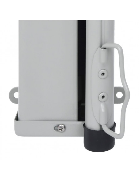 Lo schermo è realizzato in poliestere resistente ai raggi UV, all'acqua e agli strappi. La cassetta è installata su una robusta base in acciaio in posizione verticale e la tenda retrattile può essere estratta facilmente. La tenda è dotata di una funzione di riavvolgimento automatico. La consegna include anche gli accessori di montaggio.