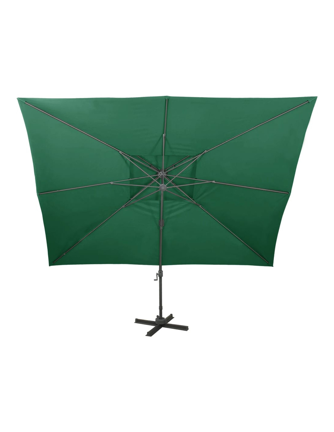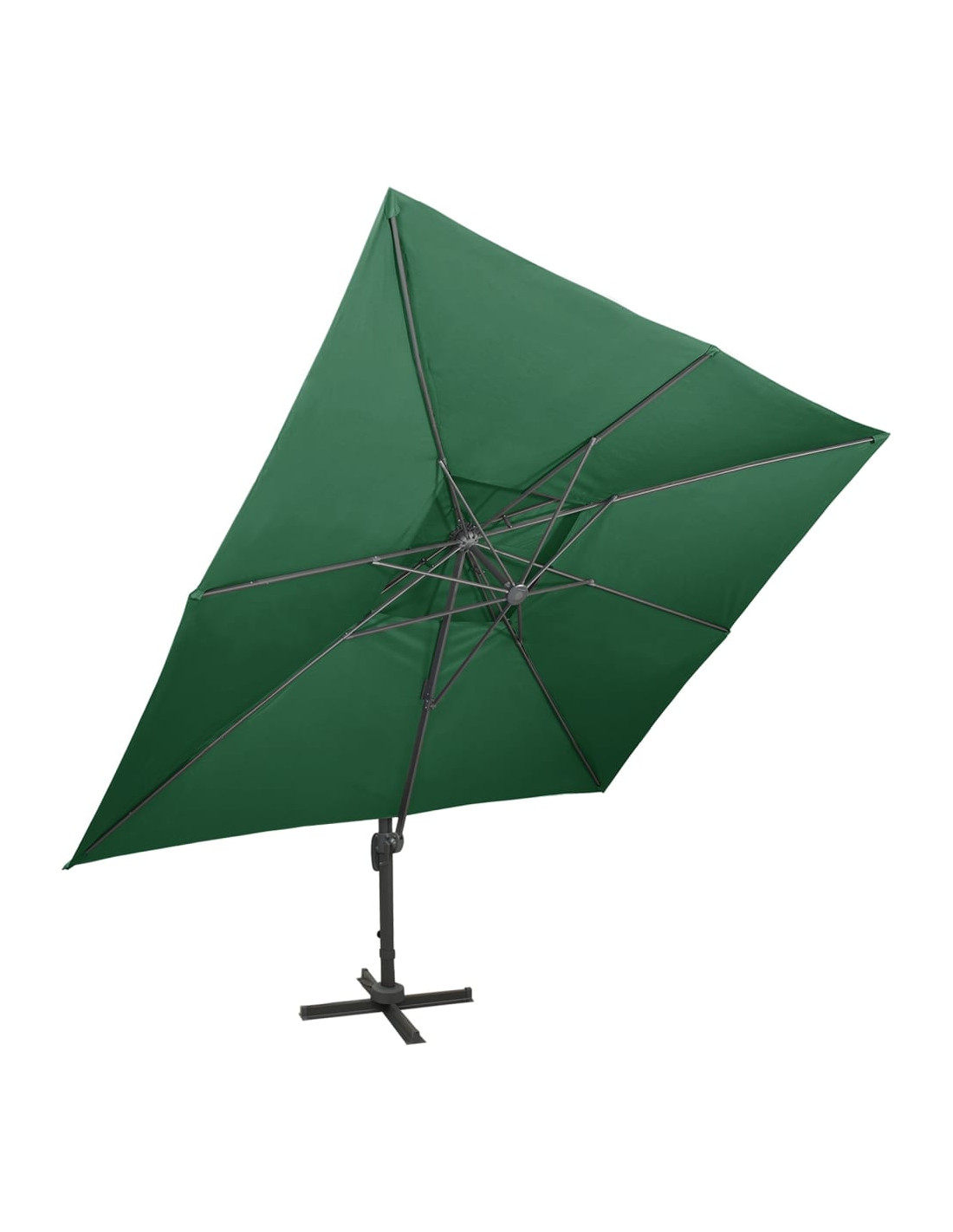Questo ombrellone da giardino a sbalzo è perfetto per creare un po' d'ombra e proteggersi dai dannosi raggi UV del sole. La fodera di questo parasole è stata realizzata in poliestere resistente ai raggi UV e anti-sbiadimento, offrendo una protezione ottimale contro il sole e risultando facile da pulire. Il prodotto è dotato di una robusta base con struttura a croce per offrire una maggiore stabilità. Il design esclusivo di questo ombrellone consente di inclinarlo e ruotarlo a 360 gradi per bloccare il sole. Il robusto palo in alluminio, insieme alle 8 stecche, rende l'ombrellone molto stabile e durevole. Questo ombrellone da giardino può essere facilmente aperto e chiuso grazie al meccanismo a manovella. Inoltre, il tettuccio dal design doppio aiuta la ventilazione. Si prega di notare che si consiglia di trattare il tessuto dell'ombrellone con uno spray impermeabilizzante se è soggetto a forti piogge.