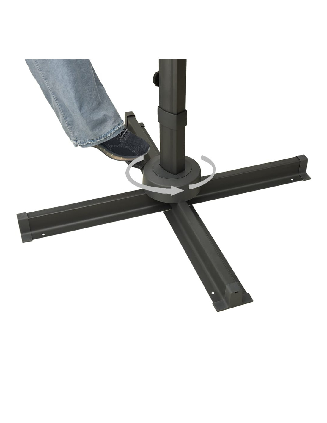 Questo ombrellone da giardino a sbalzo è perfetto per creare un po' d'ombra e proteggersi dai dannosi raggi UV del sole. La fodera di questo parasole è stata realizzata in poliestere resistente ai raggi UV e anti-sbiadimento, offrendo una protezione ottimale contro il sole e risultando facile da pulire. Il prodotto è dotato di una robusta base con struttura a croce per offrire una maggiore stabilità. Il design esclusivo di questo ombrellone consente di inclinarlo e ruotarlo a 360 gradi per bloccare il sole. Il robusto palo in alluminio, insieme alle 8 stecche, rende l'ombrellone molto stabile e durevole. Questo ombrellone da giardino può essere facilmente aperto e chiuso grazie al meccanismo a manovella. Inoltre, il tettuccio dal design doppio aiuta la ventilazione. Si prega di notare che si consiglia di trattare il tessuto dell'ombrellone con uno spray impermeabilizzante se è soggetto a forti piogge.
