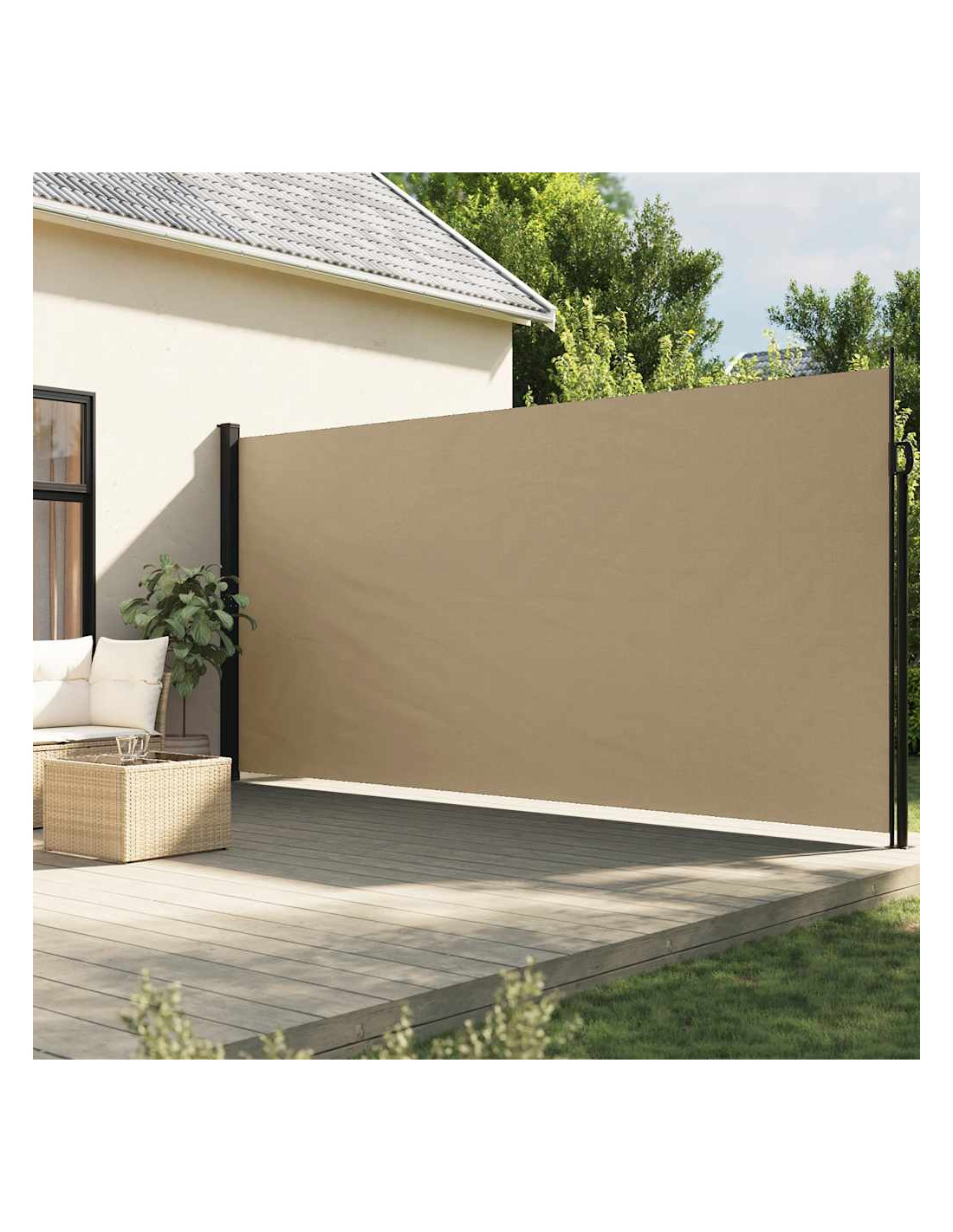 Create un'oasi istantanea e privata sul vostro balcone, terrazza o patio utilizzando questa tenda da sole laterale retrattile! Resistente all'acqua e ai raggi UV: Questo schermo per la privacy da giardino è realizzato al 100% in poliestere con un rivestimento in poliuretano (PU), che offre una buona traspirabilità e un'eccellente protezione da vento, sole, acqua e raggi UV.Pratico design: Grazie al suo design retrattile, lo schermo da giardino si riavvolte automaticamente quando rimuovere la maniglia dal palo.Facile montaggio: I due pali possono essere fissati facilmente alla parete e a terra, per aggiungere una stabilità e una sicurezza maggiori utilizzando gli accessori di montaggio inclusi.Ampie applicazioni: Questa versatile tenda da sole laterale può essere utilizzata in una varietà di ambienti, sia all'aperto come ad esempio in cortile, terrazza, giardino, portico, balcone, sia al chiuso come in ufficio, clinica, studio, spogliatoio, per creare uno spazio a parete aggiuntivo a seconda delle vostre necessità.