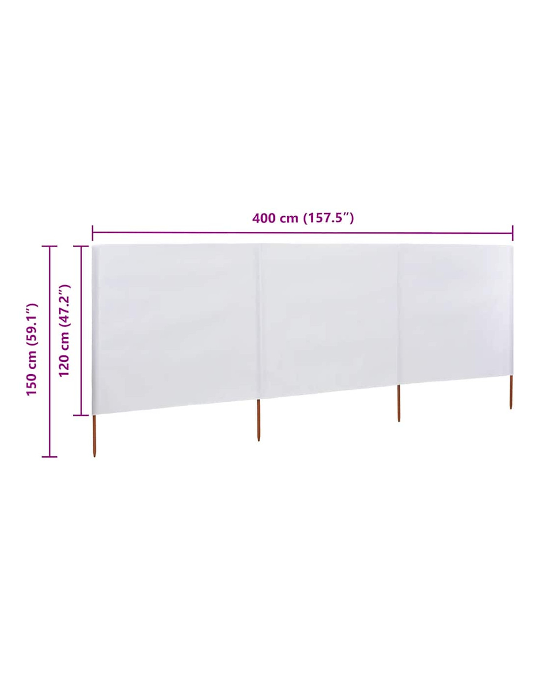 Il paravento pieghevole a 3 pannelli ha una lunghezza di 400 cm e un'altezza di 120 cm complessivi e presenta una soluzione efficace per ripararvi dal vento e dalle correnti durante la giornata.