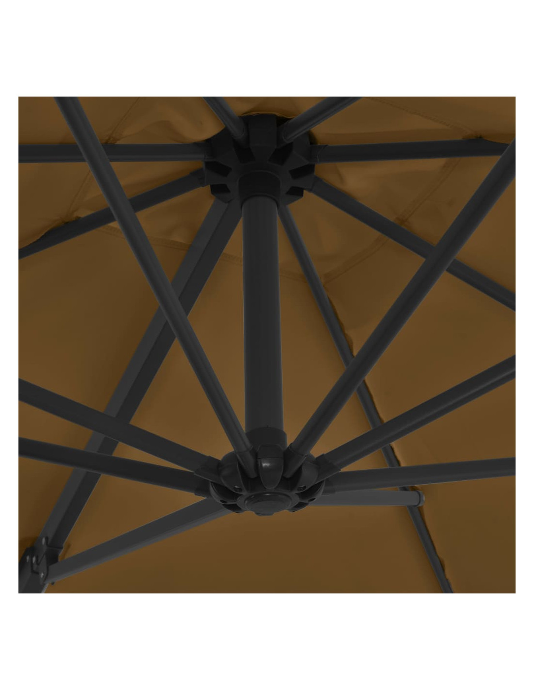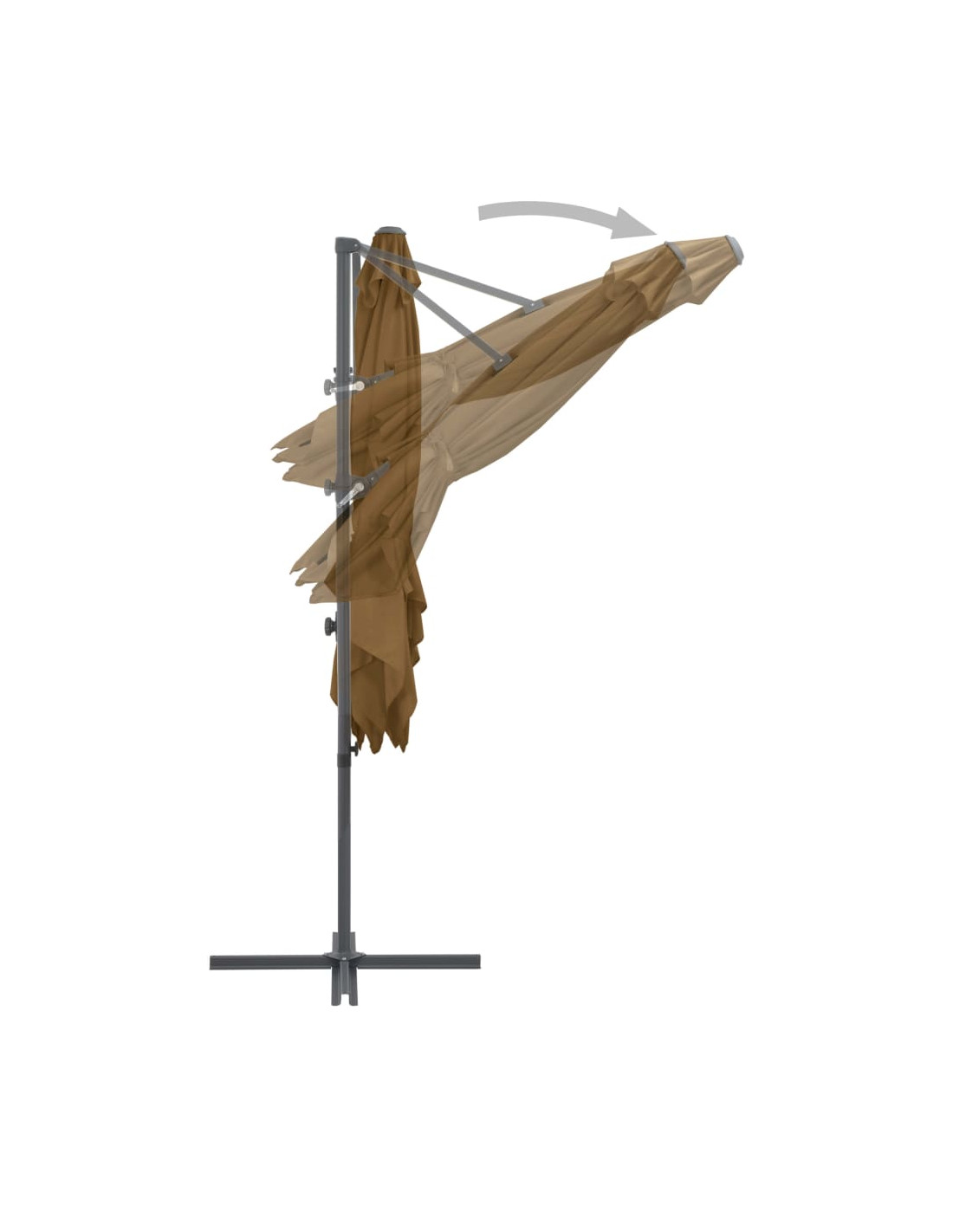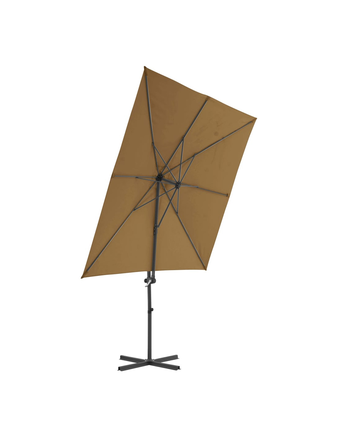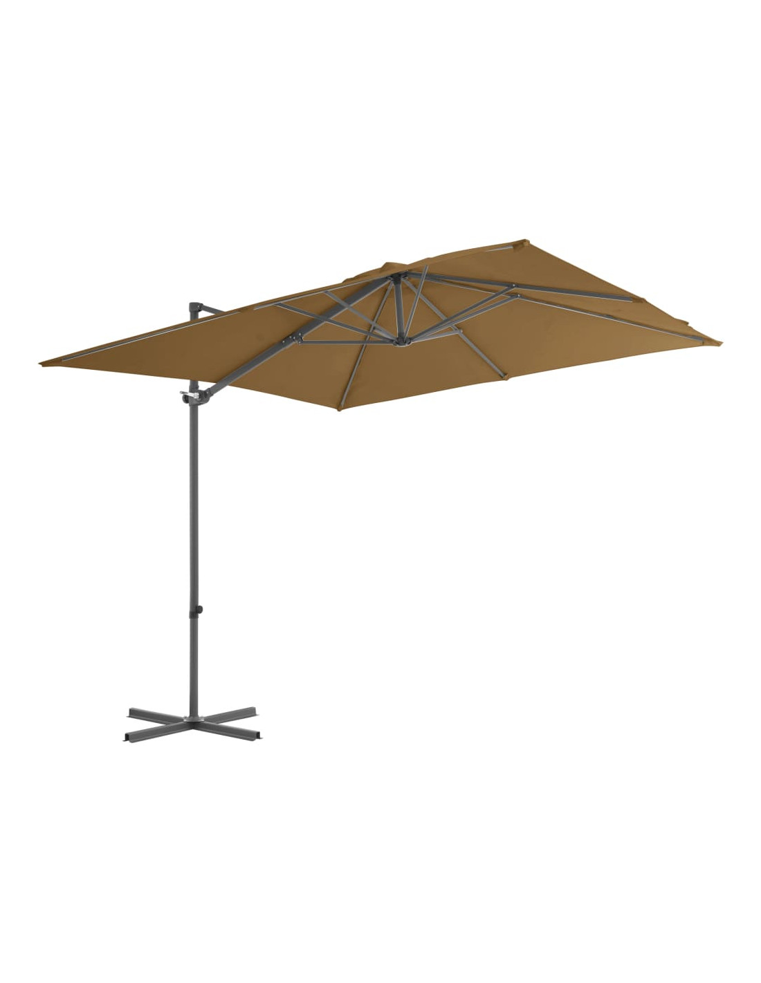 Questo elegante ombrellone pensile è perfetto per creare un po' d'ombra e proteggervi dai dannosi raggi UV del sole. Il telo di questo parasole è realizzato in poliestere resistente ai raggi UV e anti-sbiadimento, offre una protezione ottimale contro il sole ed è molto facile da pulire. Il prodotto è dotato di una robusta base con struttura a croce per offrire una maggiore stabilità. Il design esclusivo di questo parasole vi permette di inclinare l'ombrellone e ruotarlo a 360° per bloccare i raggi solari. Il robusto palo in acciaio, in combinazione con gli 8 resistenti braccetti, rende l'ombrellone molto stabile e durevole. Il nostro ombrellone da giardino può essere facilmente aperto e richiuso grazie al meccanismo a manovella. Questo articolo è facile da assemblare. Si prega di notare che si consiglia di trattare il tessuto dell'ombrellone con uno spray impermeabilizzante se è soggetto a forti piogge.